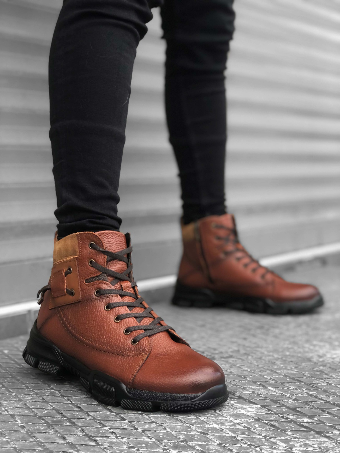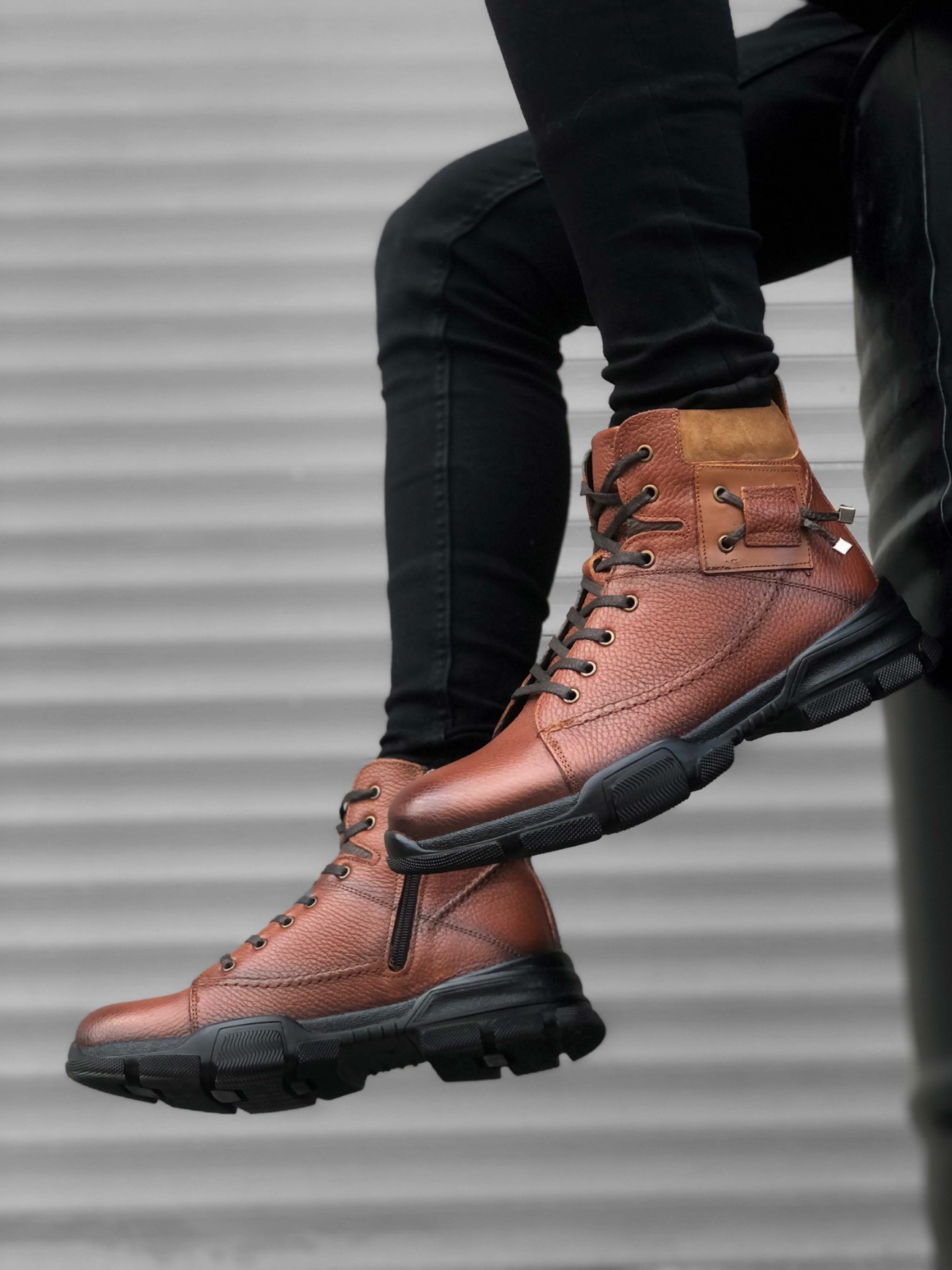 BA0184 İçi Dışı Hakiki Deri Taba Erkek Fermuarlı Yarım Bot
