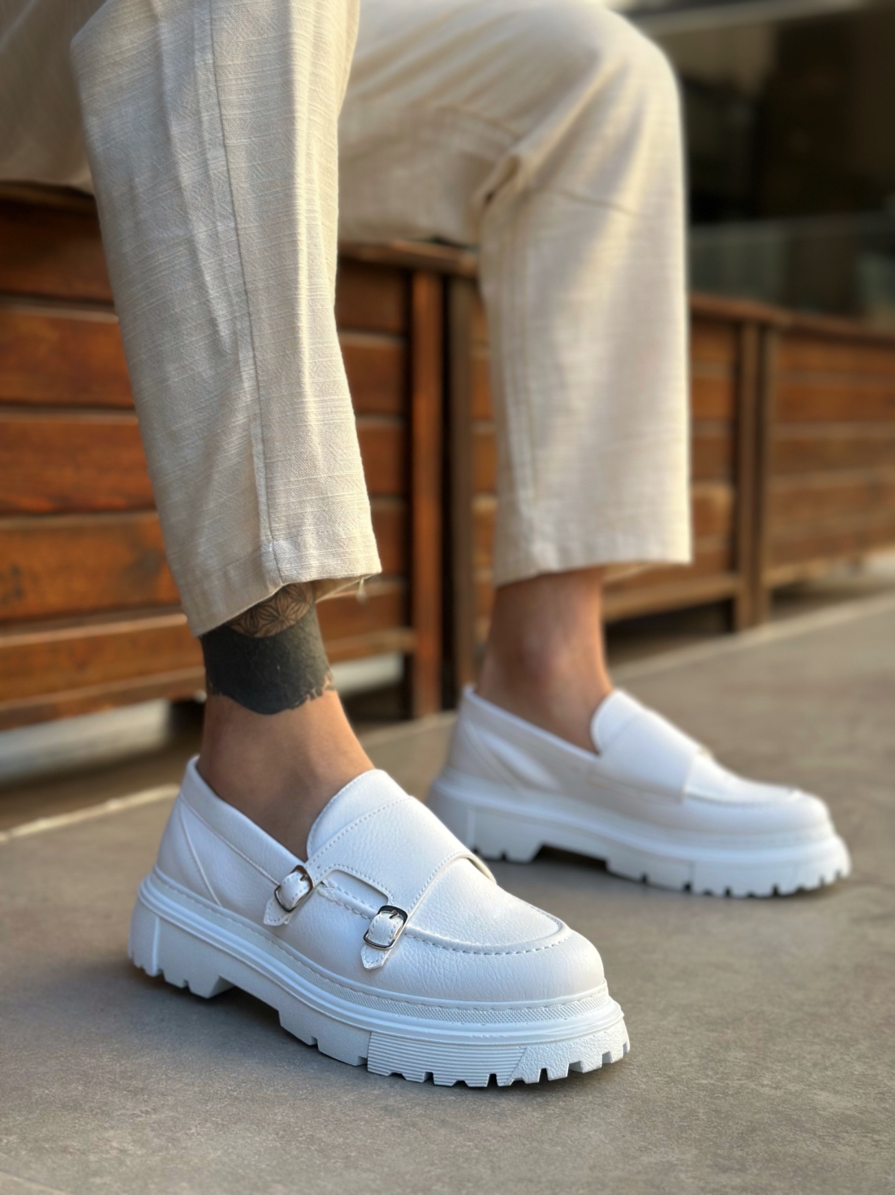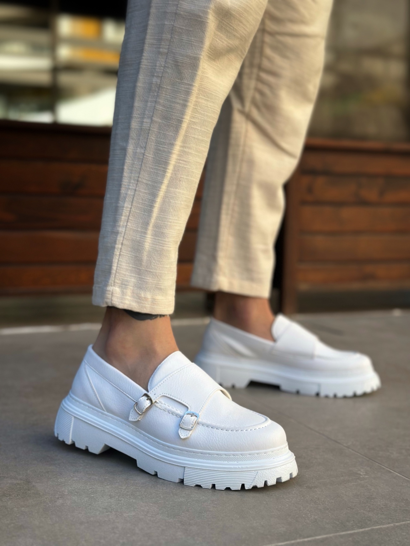 BA0242 Tokalı Klasik Yüksek Taban Beyaz Erkek Ayakkabı