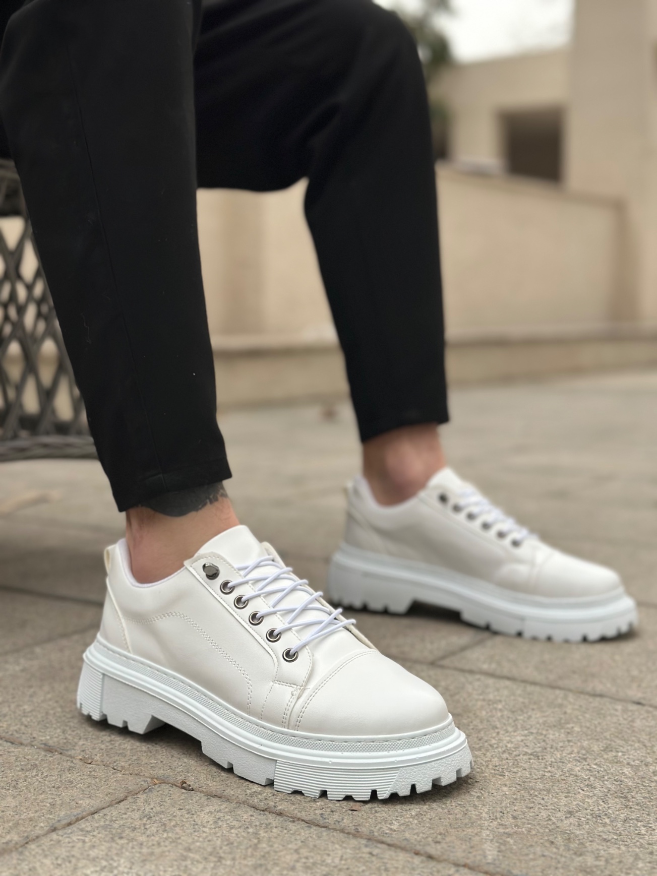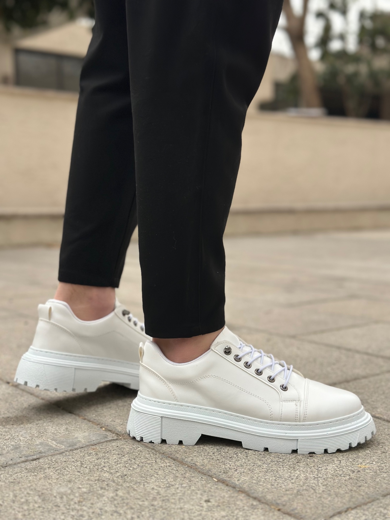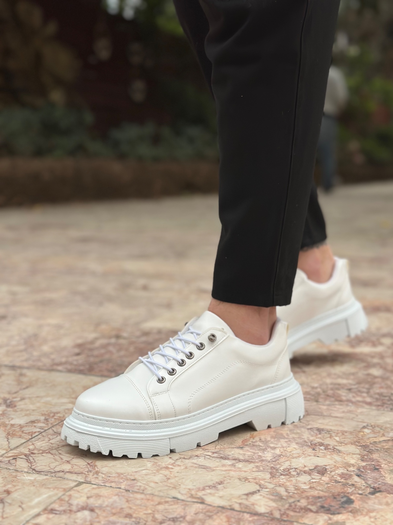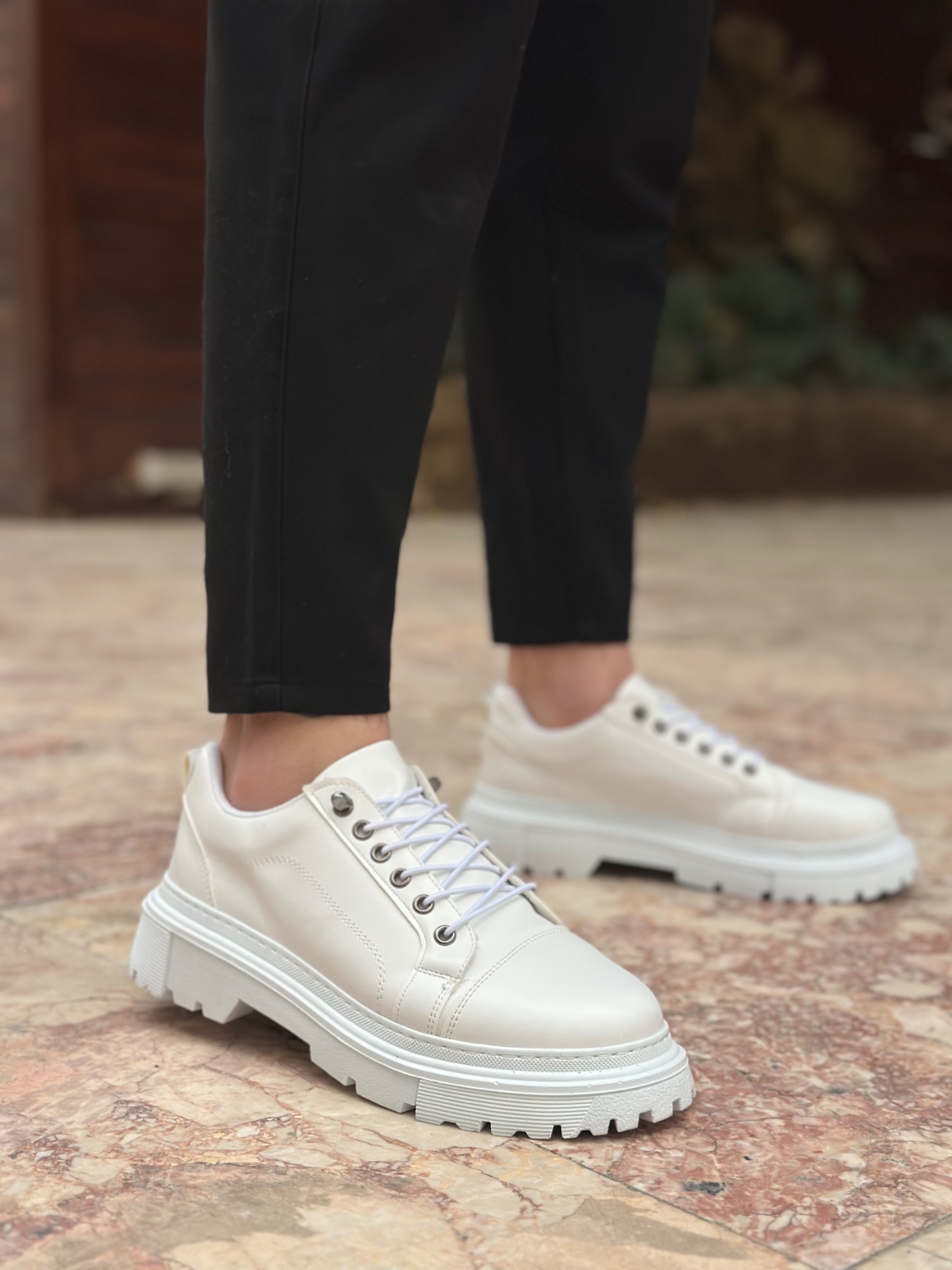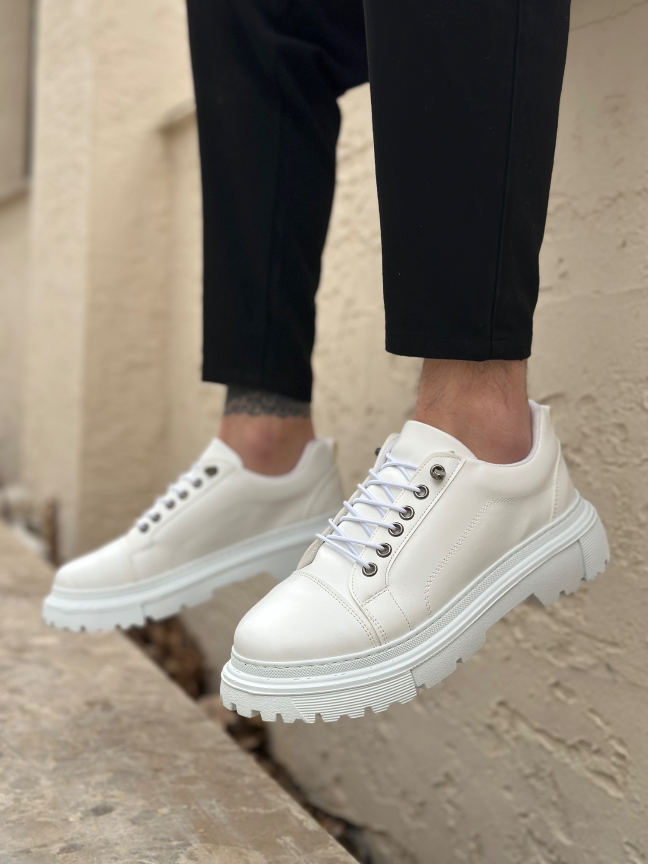 • BA0245 Beyaz Akıllı Lastik Bağcık Yüksek Siyah Taban Günlük Erkek Ayakkabı