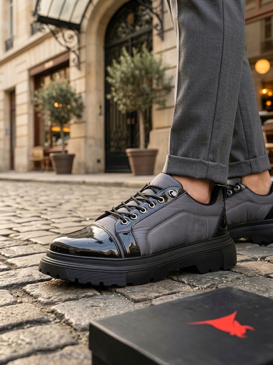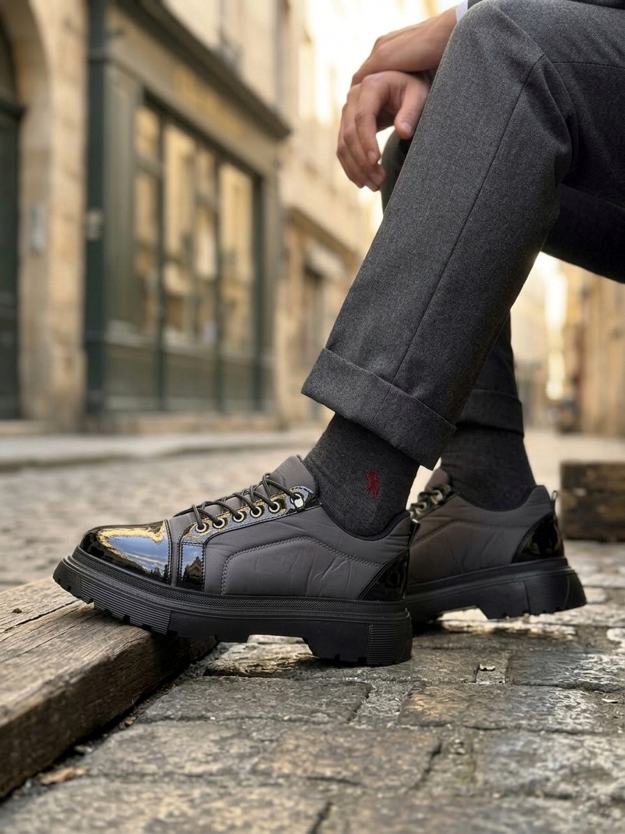 • BA0245 Gri Rugan Paraşüt Detaylı Akıllı Lastik Bağcık Yüksek Taban Günlük Erkek Ayakkabı