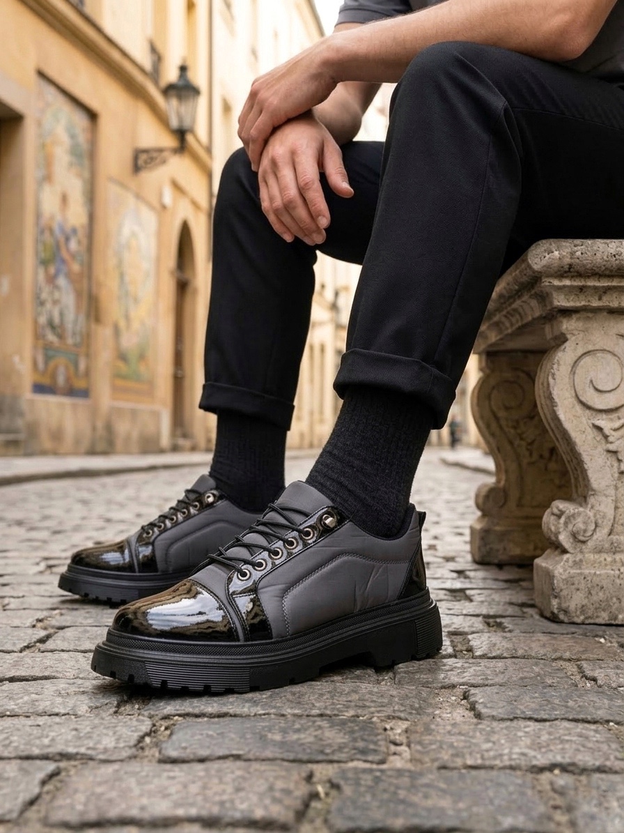BA0245 Gri Rugan Paraşüt Detaylı Akıllı Lastik Bağcık Yüksek Taban Günlük Erkek Ayakkabı
