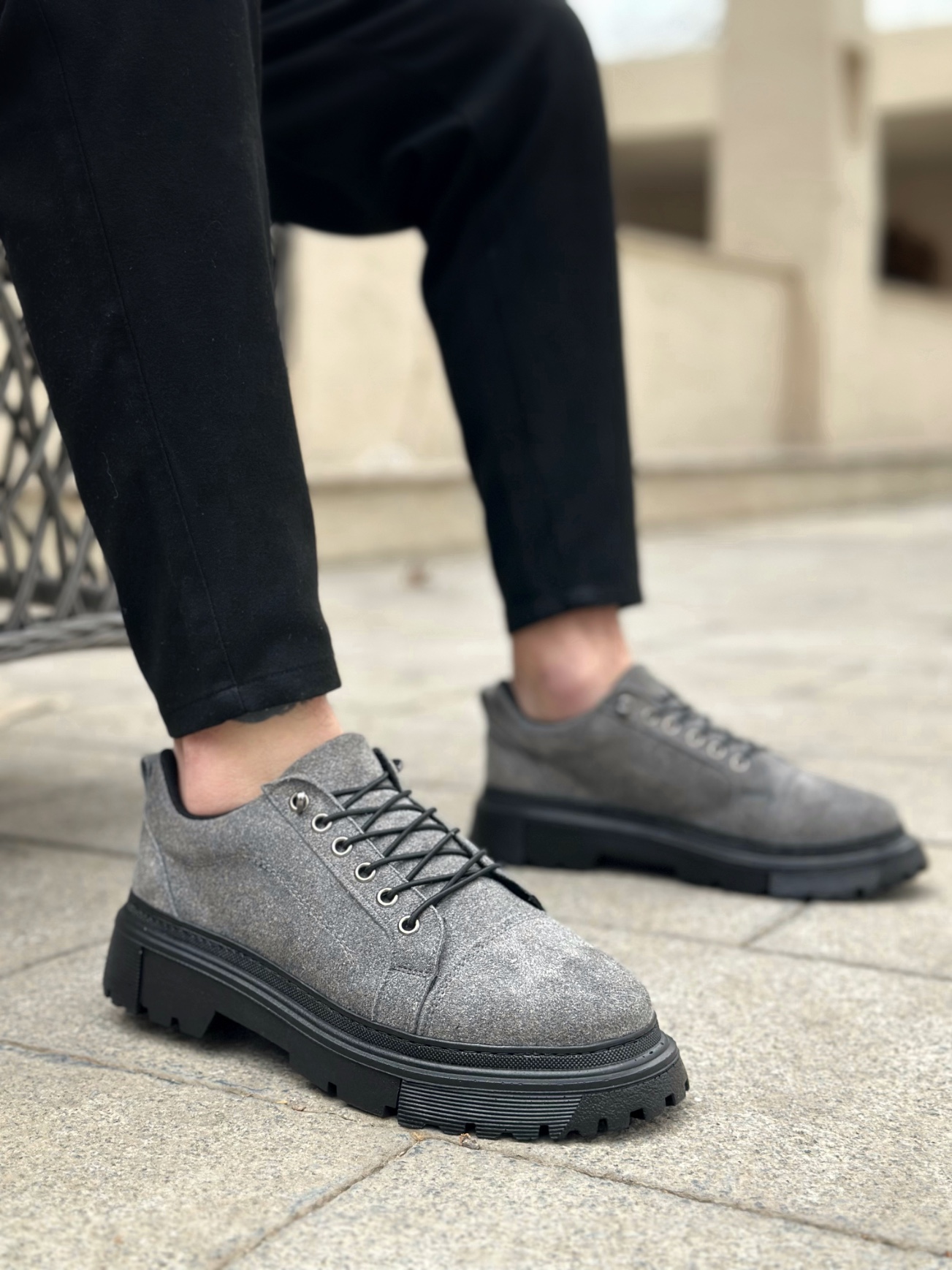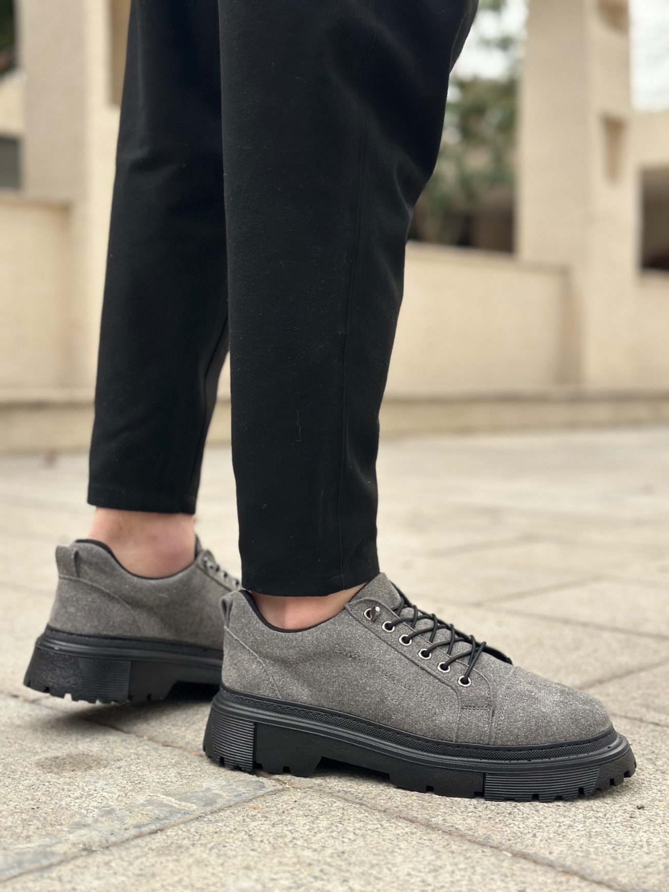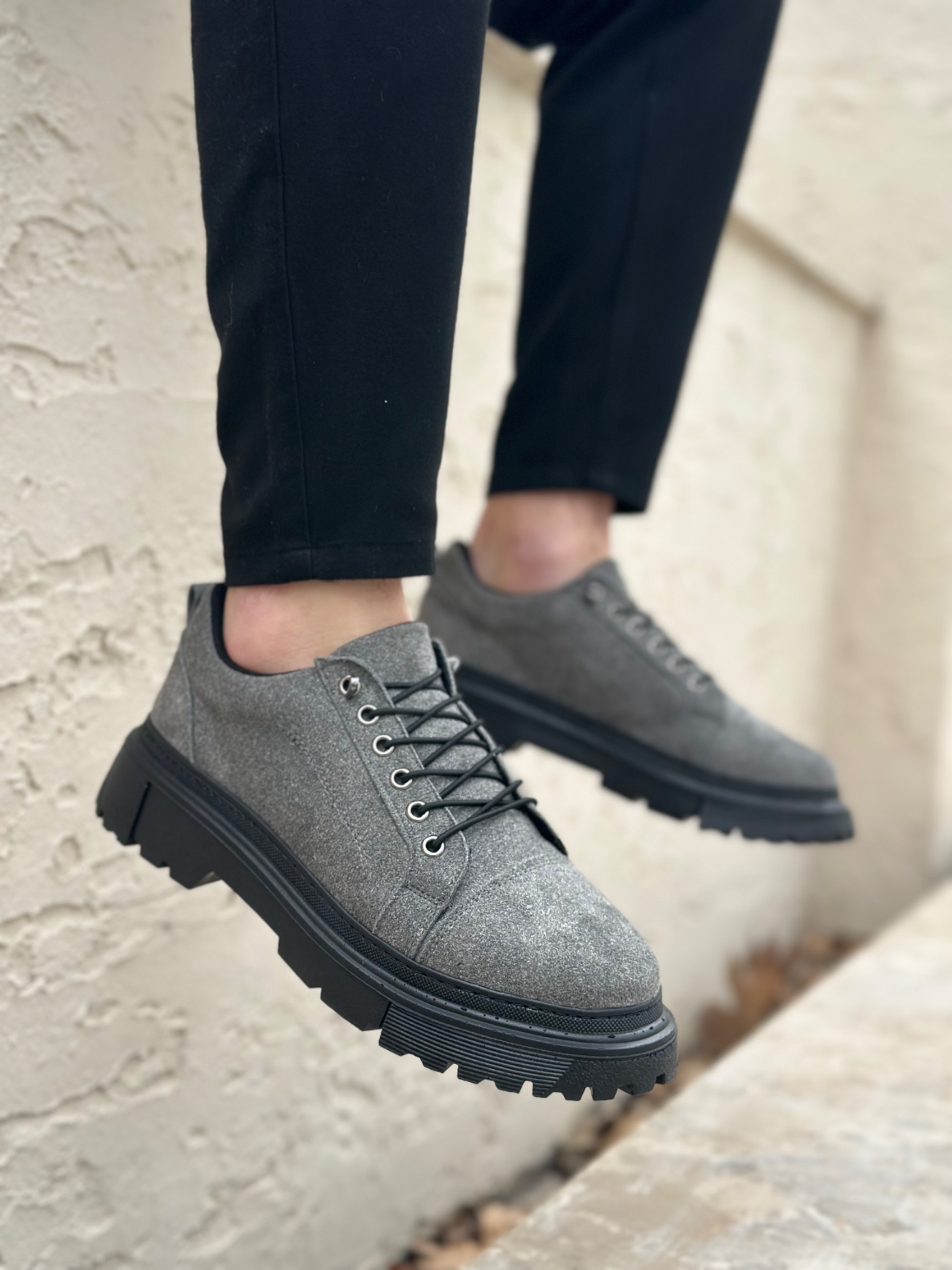 • BA0245 Gri Süet Akıllı Lastik Bağcık Yüksek Taban Günlük Erkek Ayakkabı