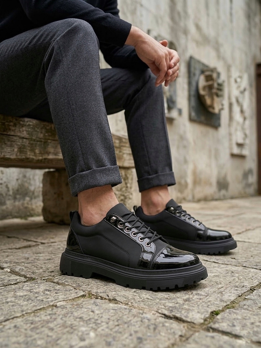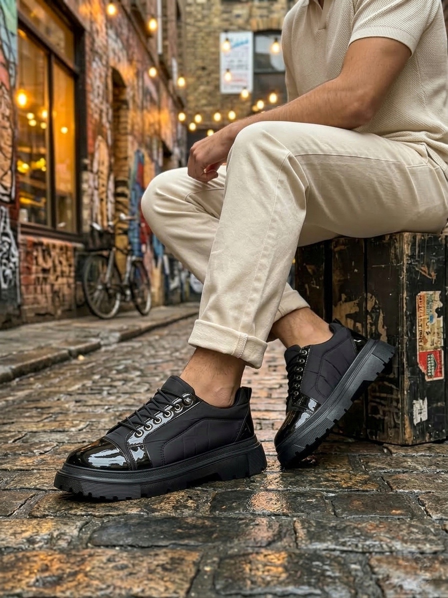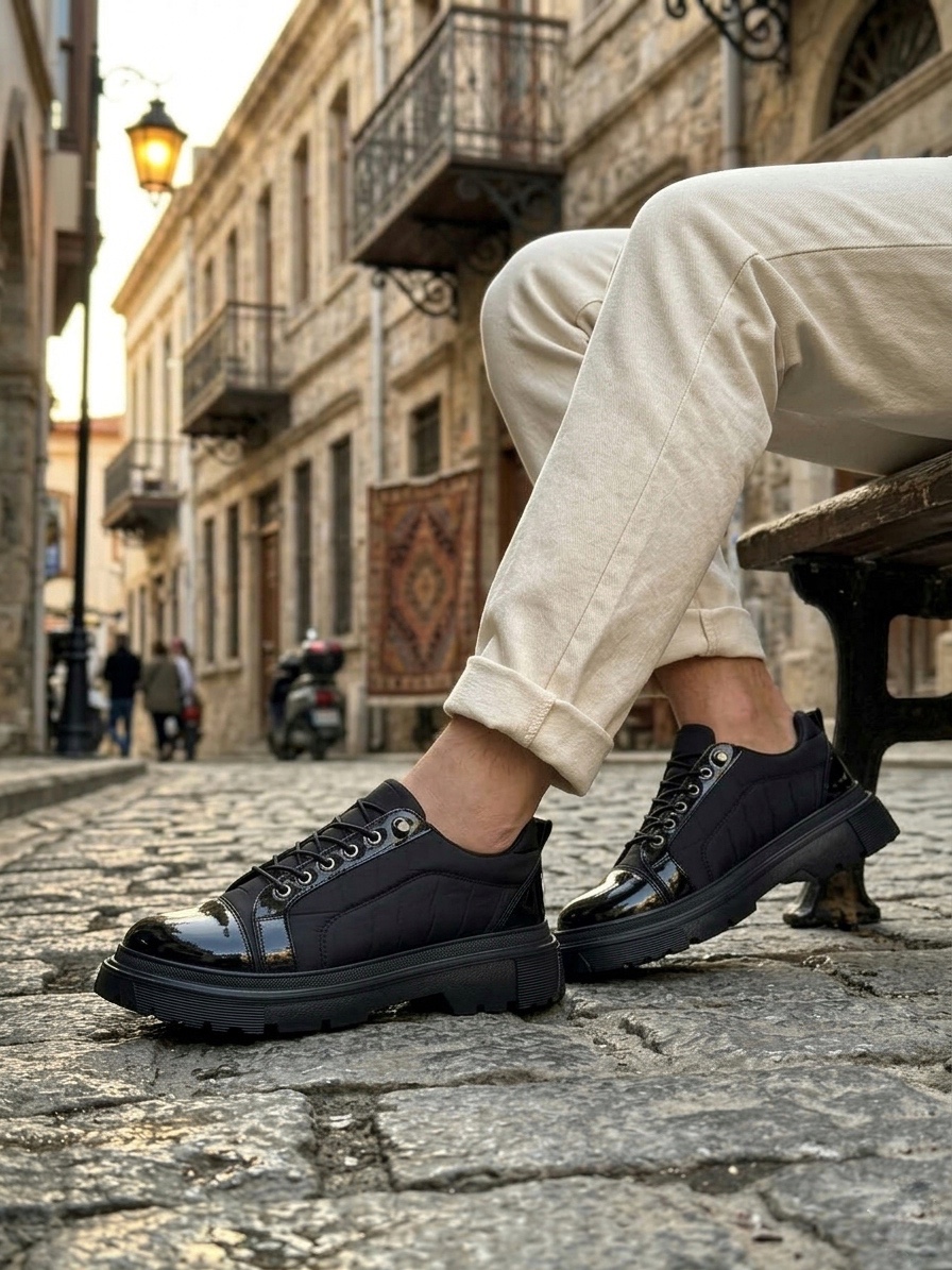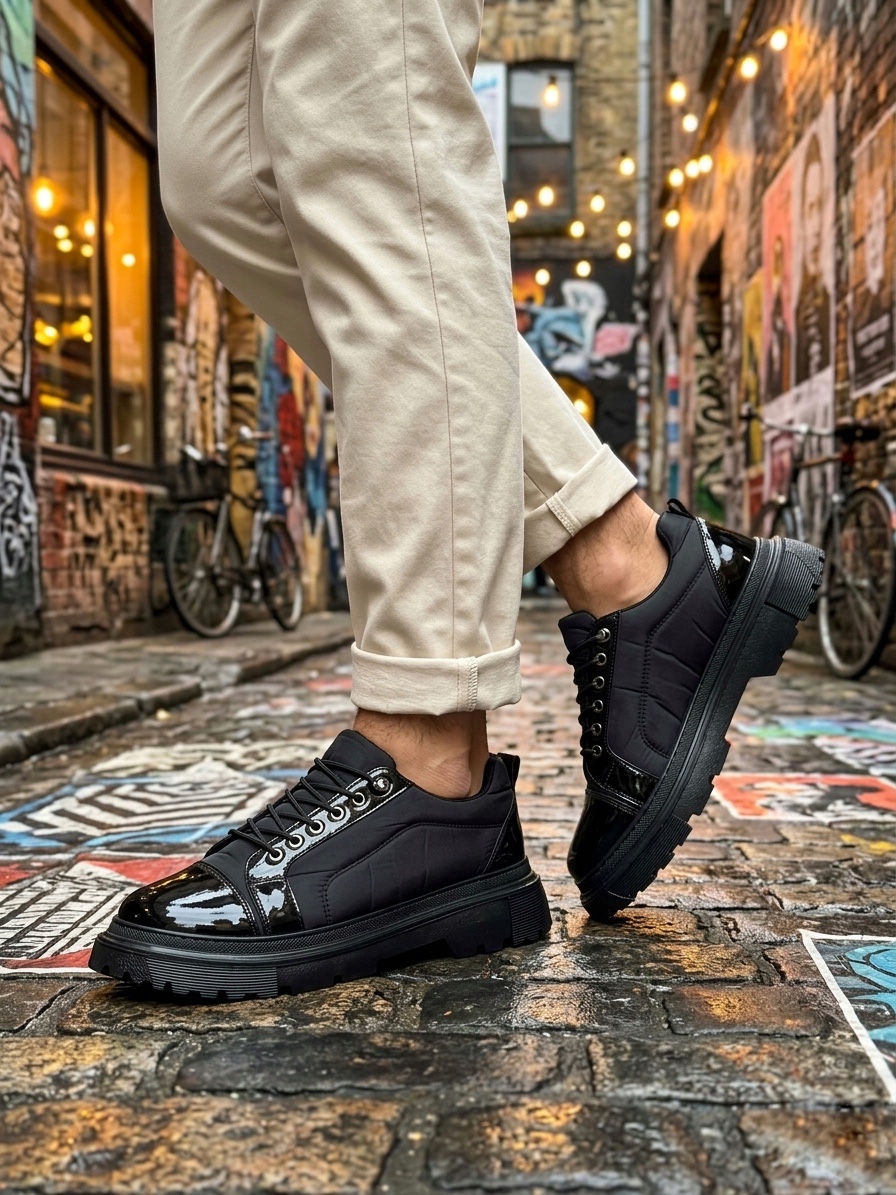BA0245 Siyah Rugan Paraşüt Detaylı Akıllı Lastik Bağcık Yüksek Taban Günlük Erkek Ayakkabı