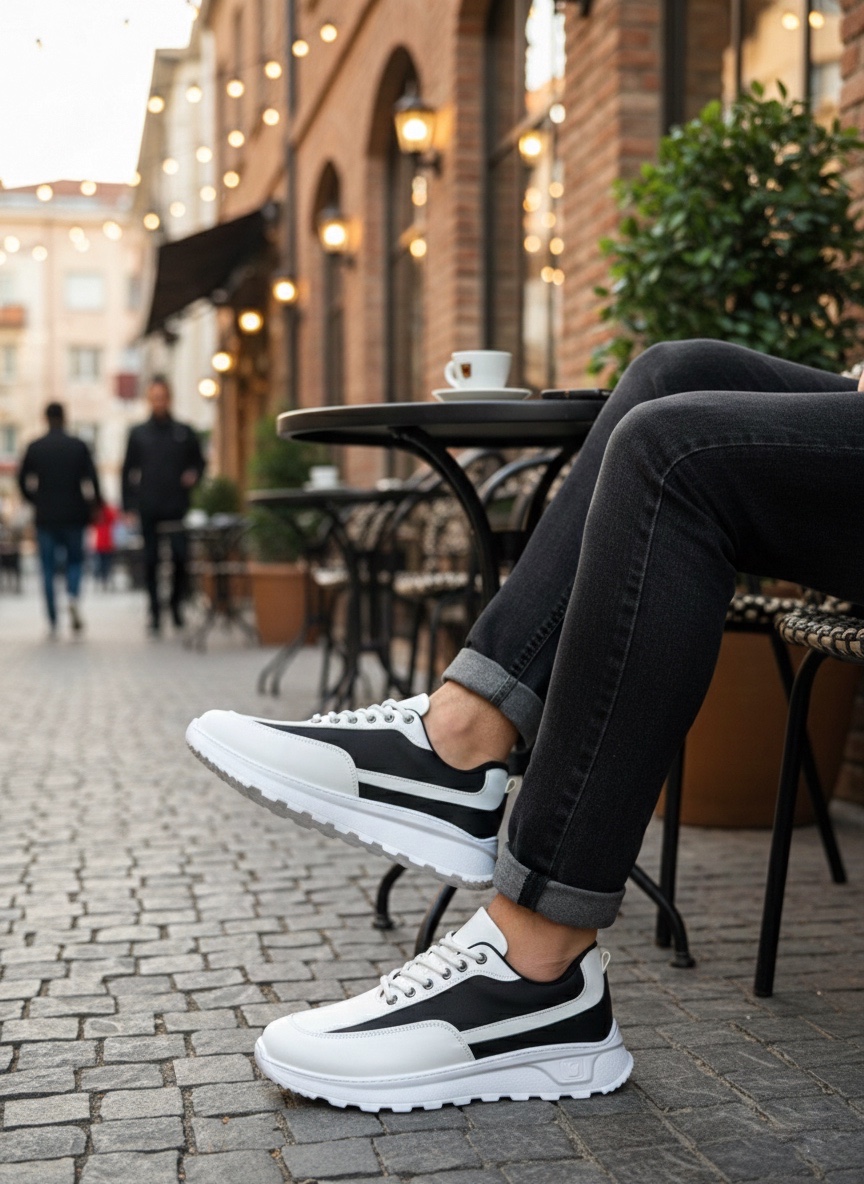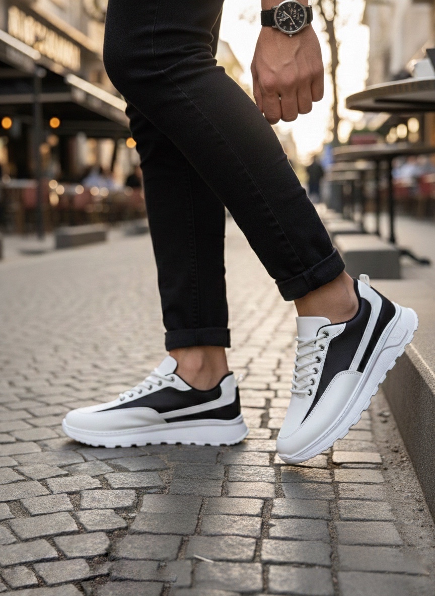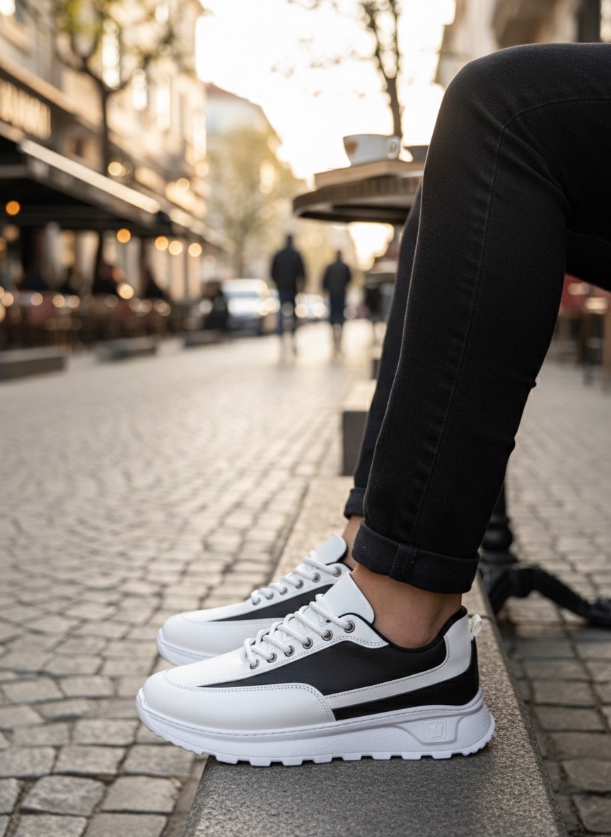 • BA0246 Beyaz Siyah Parçalı Bağcıklı Yüksek Taban Günlük Erkek Ayakkabı
