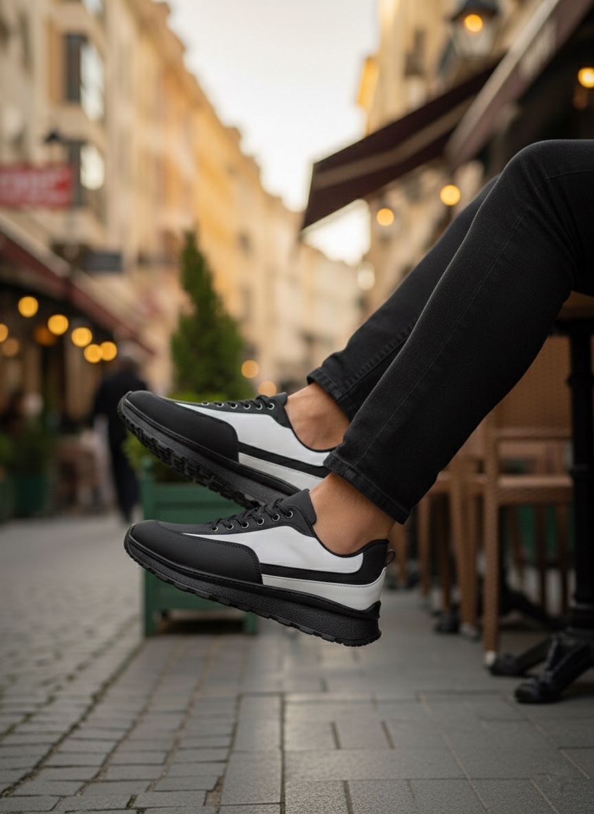 • BA0246 Siyah Beyaz Parçalı Bağcıklı Yüksek Taban Günlük Erkek Ayakkabı