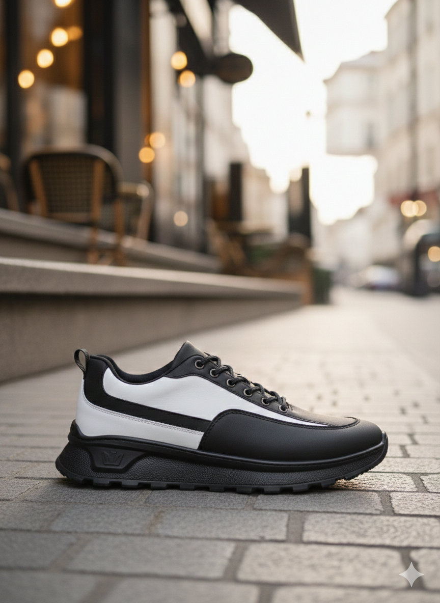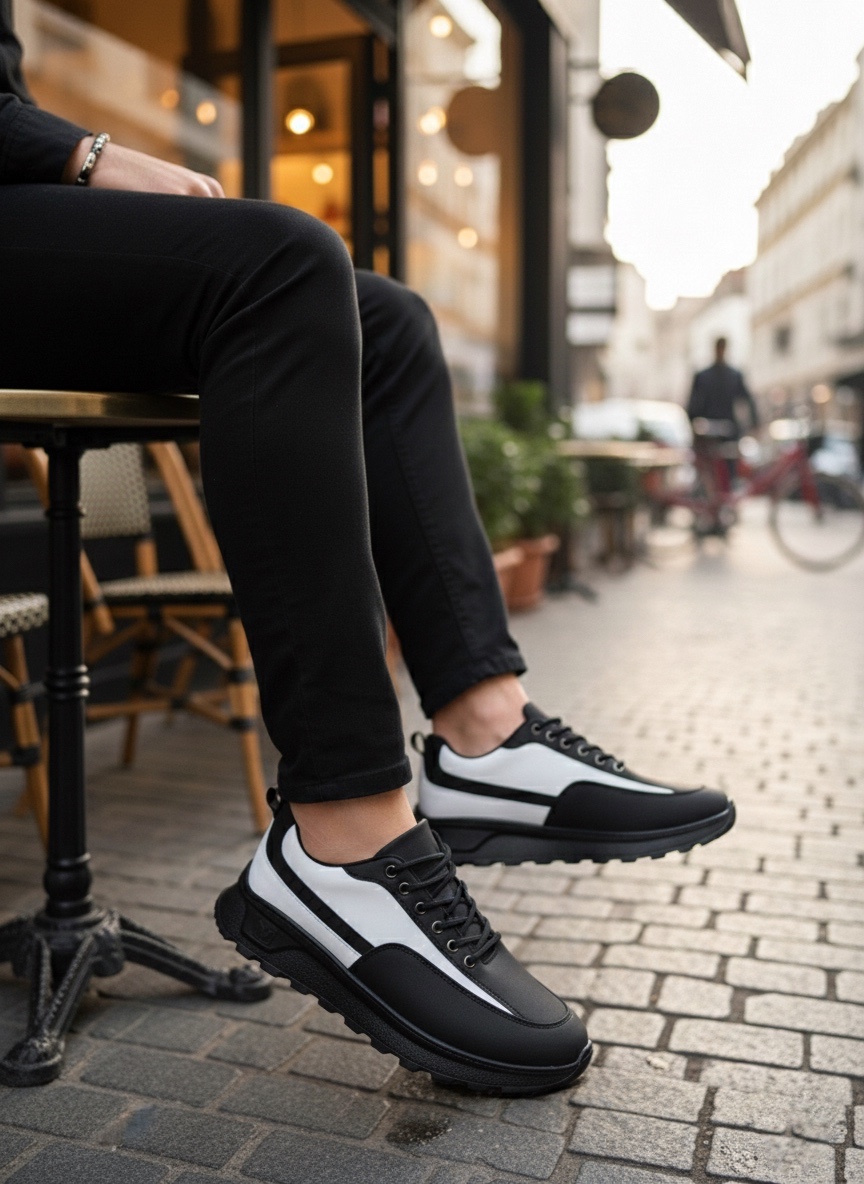 BA0246 Siyah Beyaz Parçalı Bağcıklı Yüksek Taban Günlük Erkek Ayakkabı