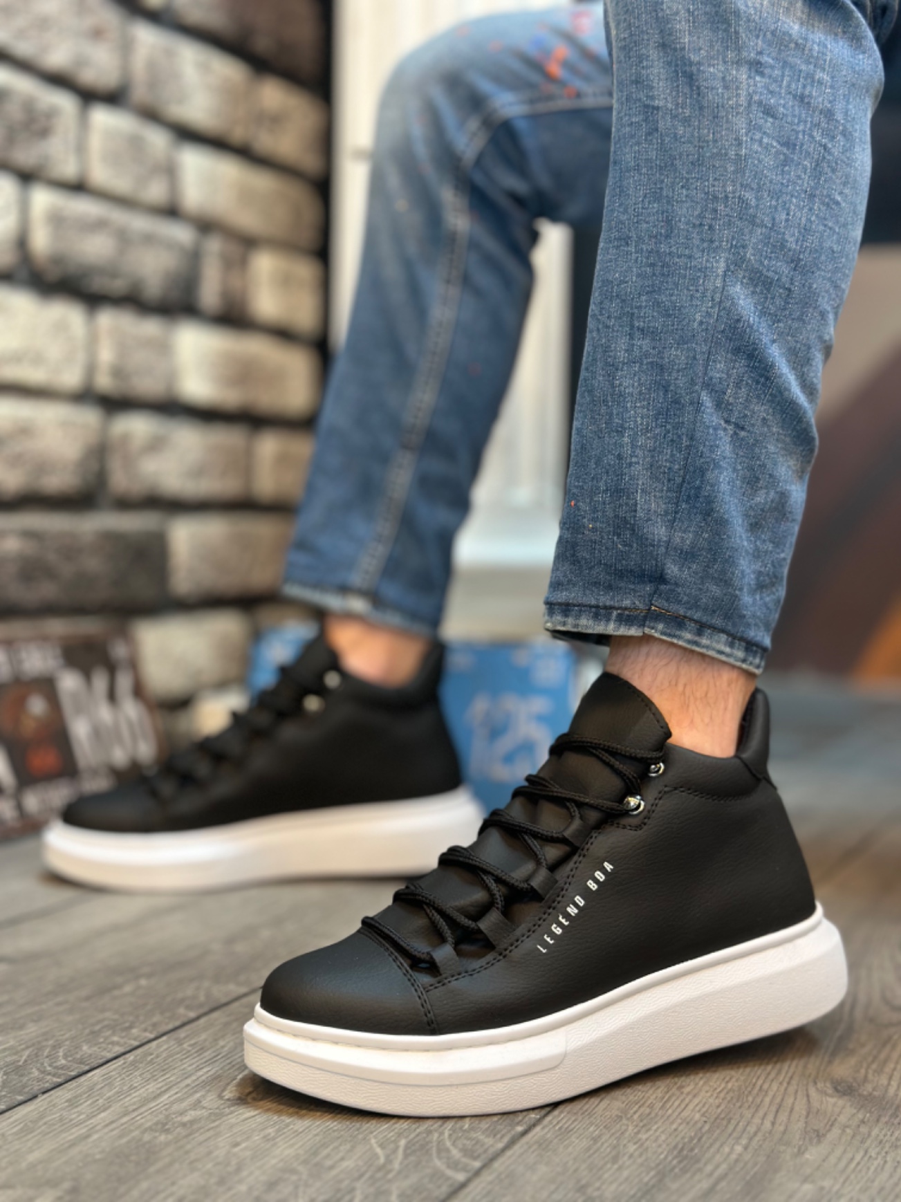 BA0312 Bağcıklı Yüksek Siyah Beyaz Taban Erkek Tarz Spor Bot