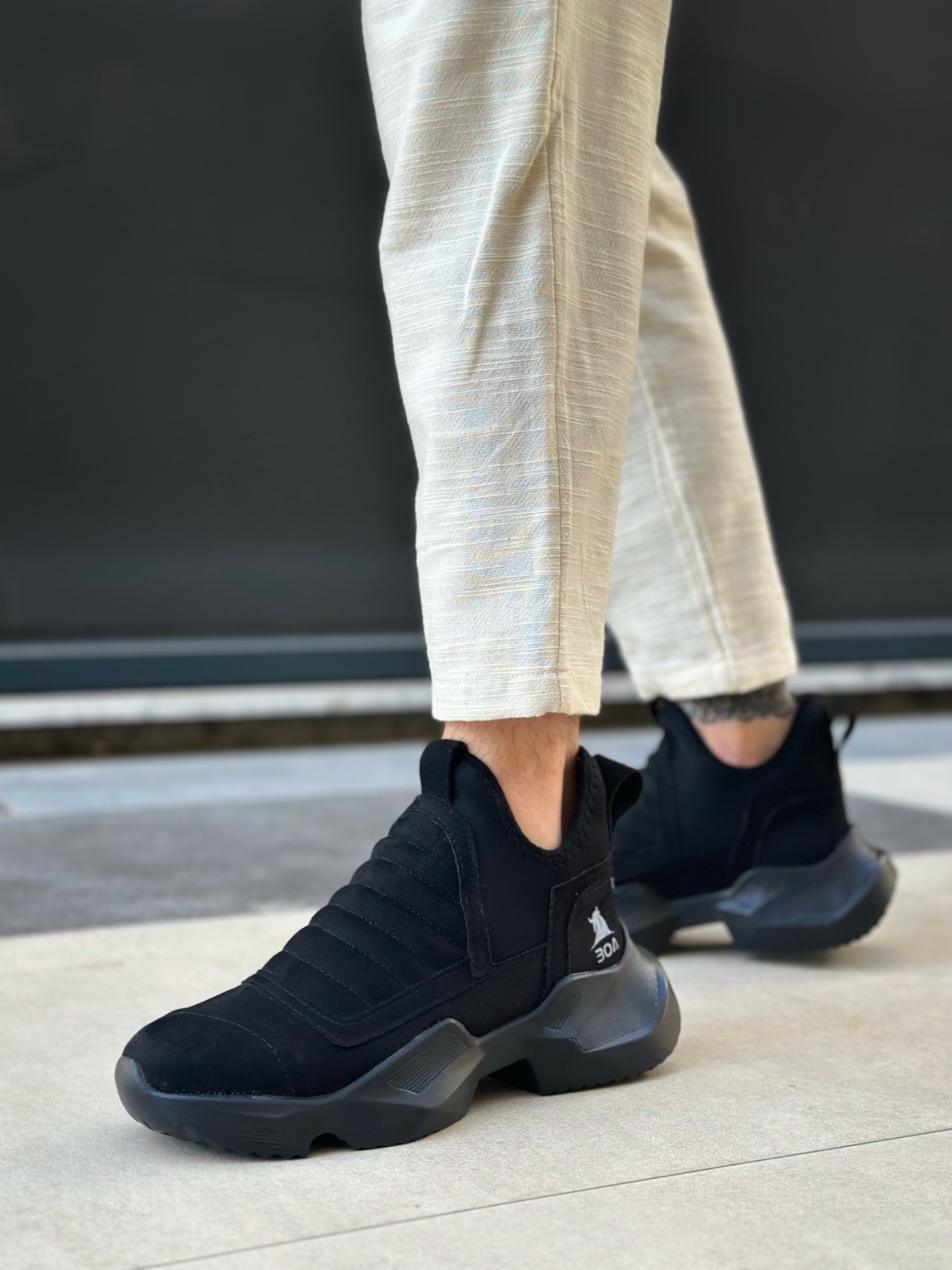 BA0401 Bağcıksız Rahat Yüksek Siyah Taban Siyah Süet Erkek Spor Yarım Bilek Bot
