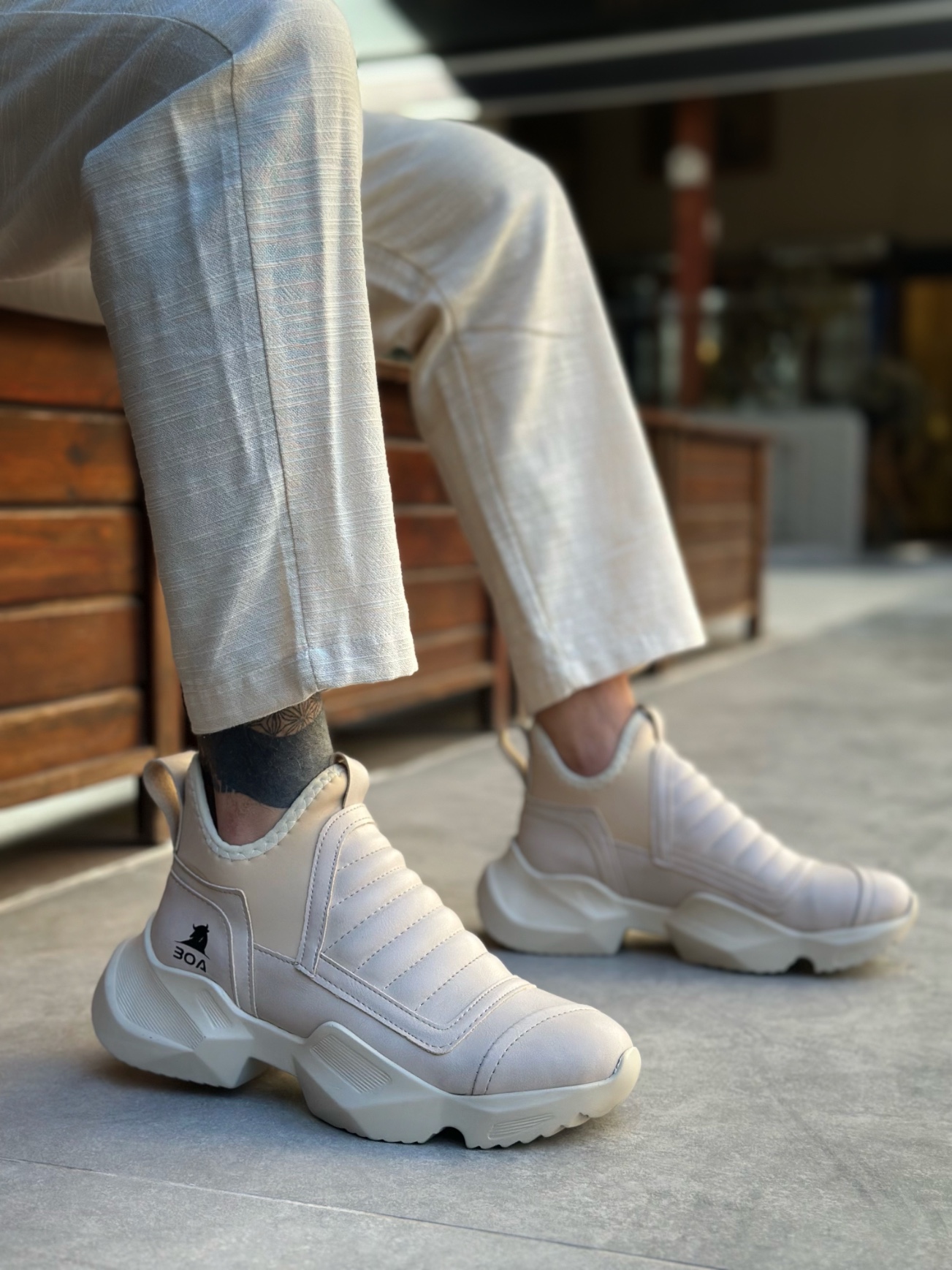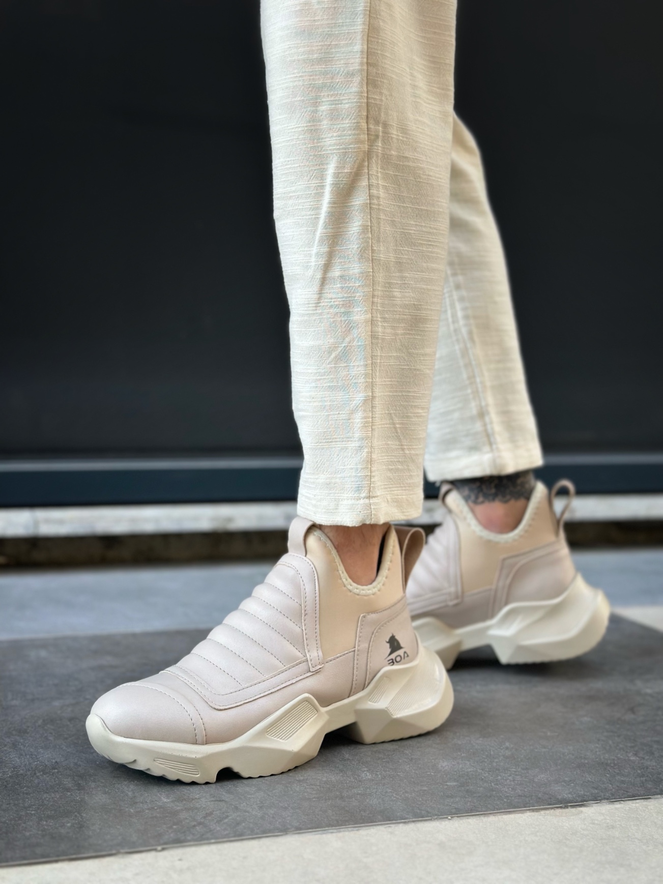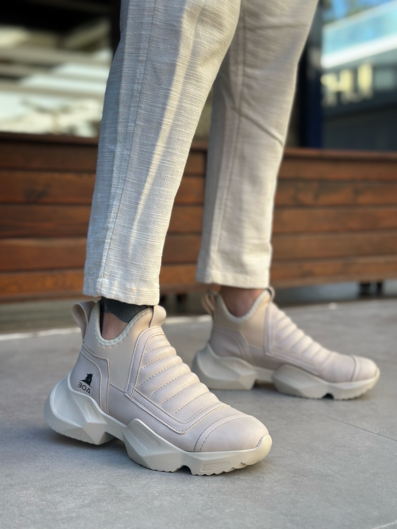 BA0401 Bağcıksız Rahat Yüksek Taban Krem Erkek Spor Yarım Bilek Bot