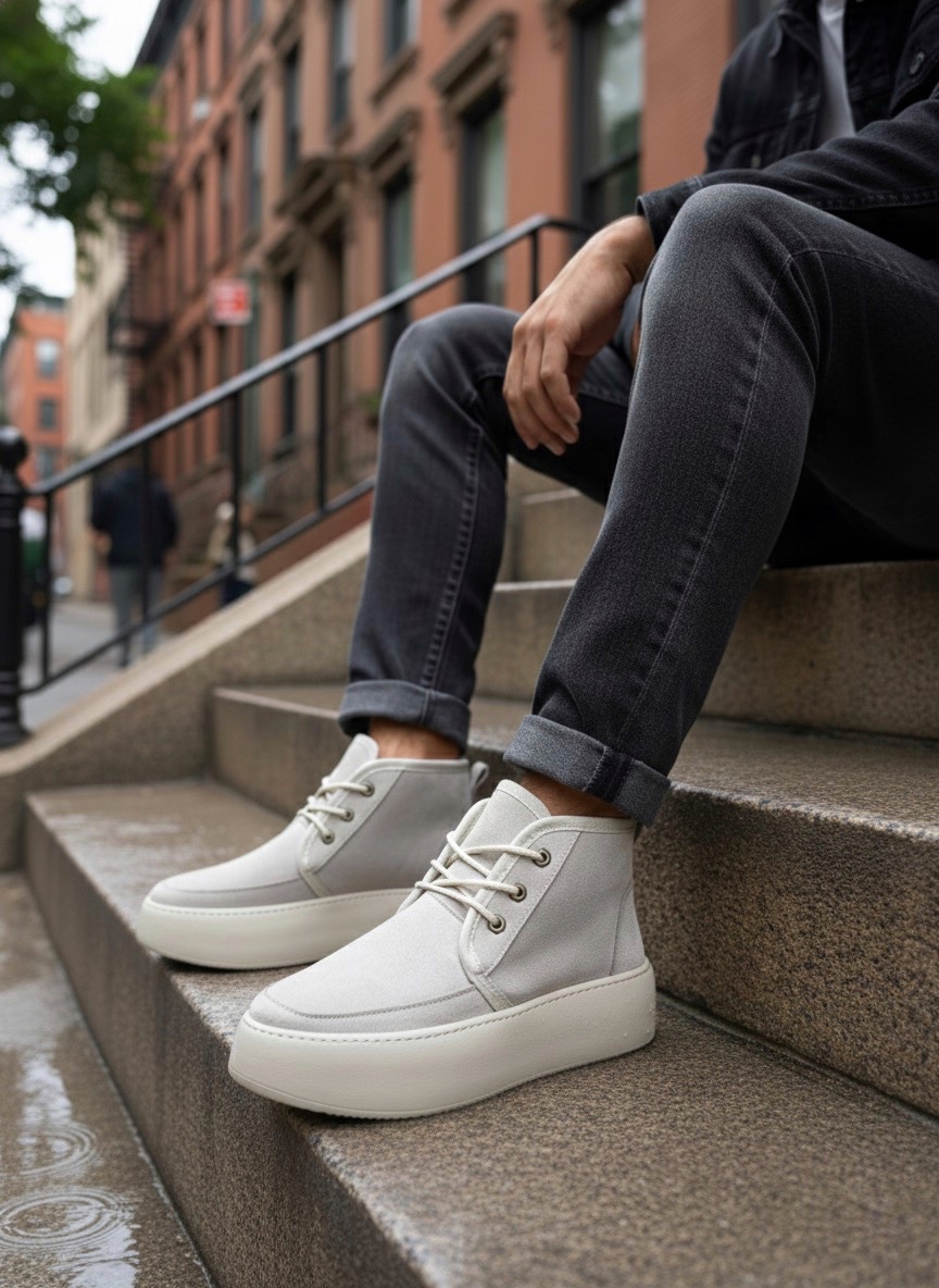 • BA0550 İçi Kürklü Bağcıklı Krem Erkek Tarz Spor Bot