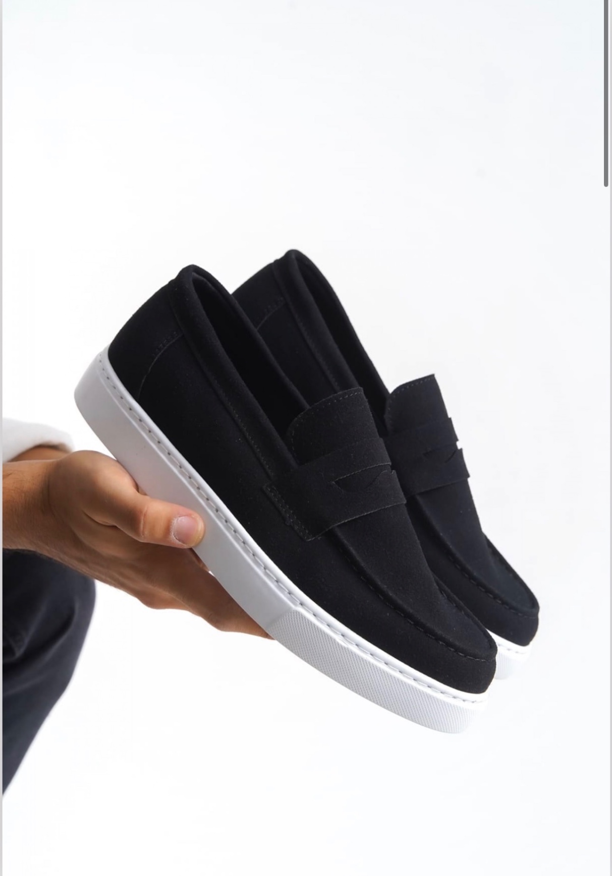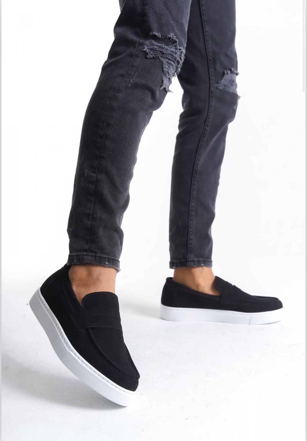 • BA0580 Bağcıksız Kuşaklı Yüksek Süet Siyah Beyaz Taban Erkek Ayakkabı