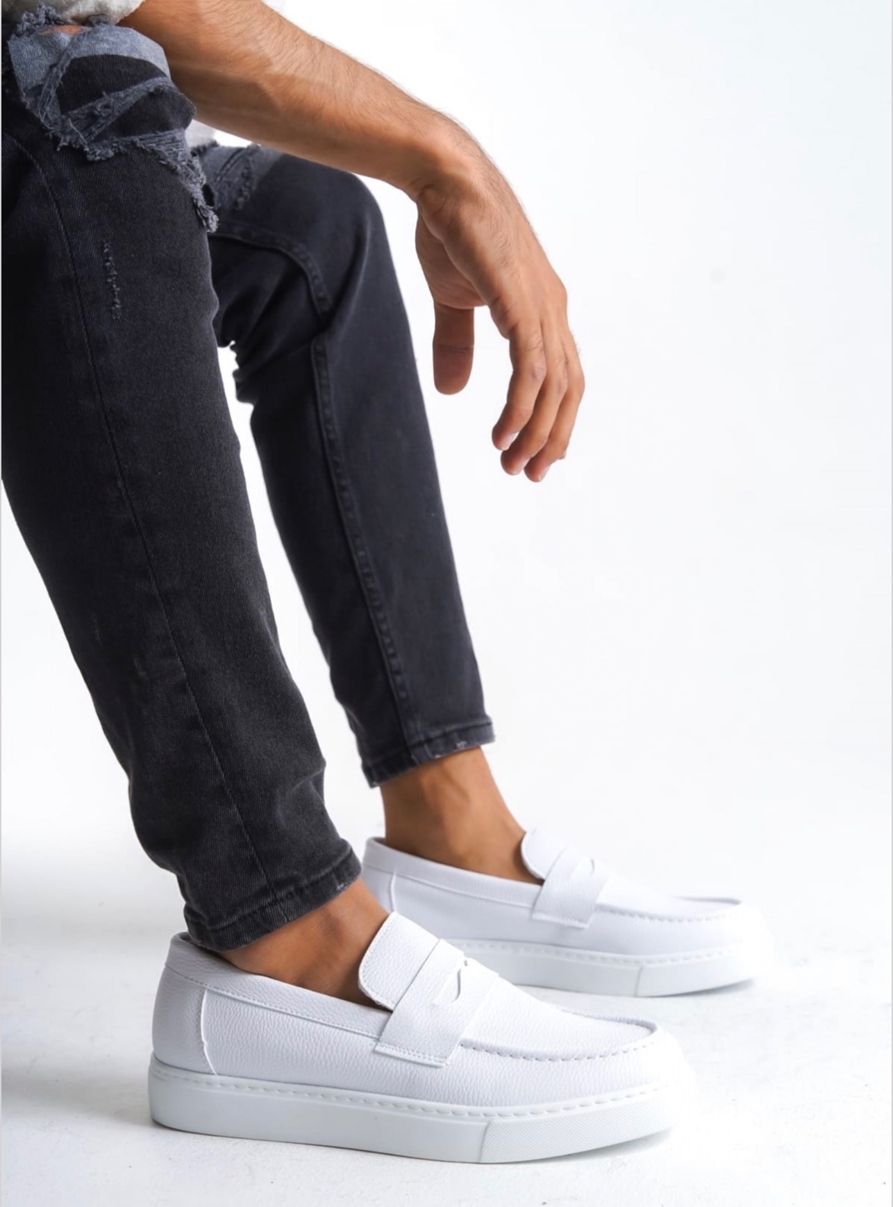 • BA0580 Bağcıksız Kuşaklı Yüksek Taban Beyaz Cilt Erkek Ayakkabı