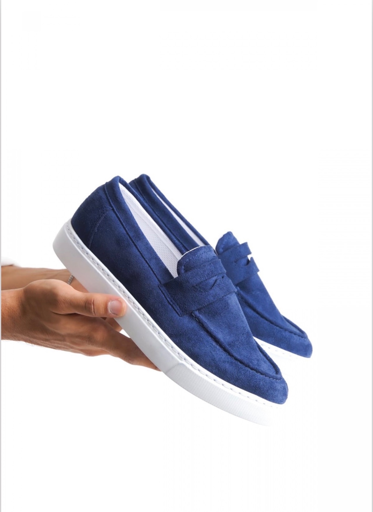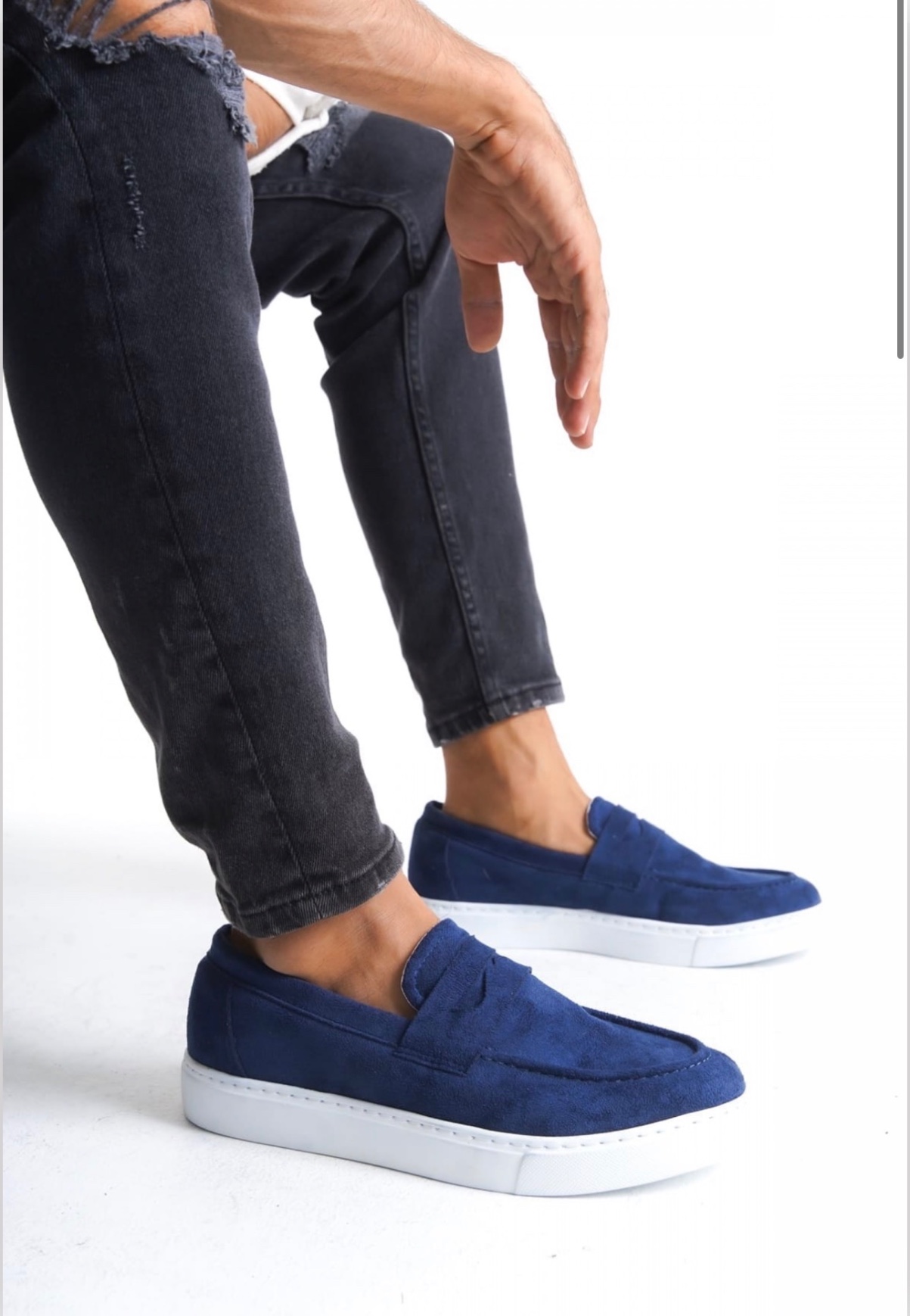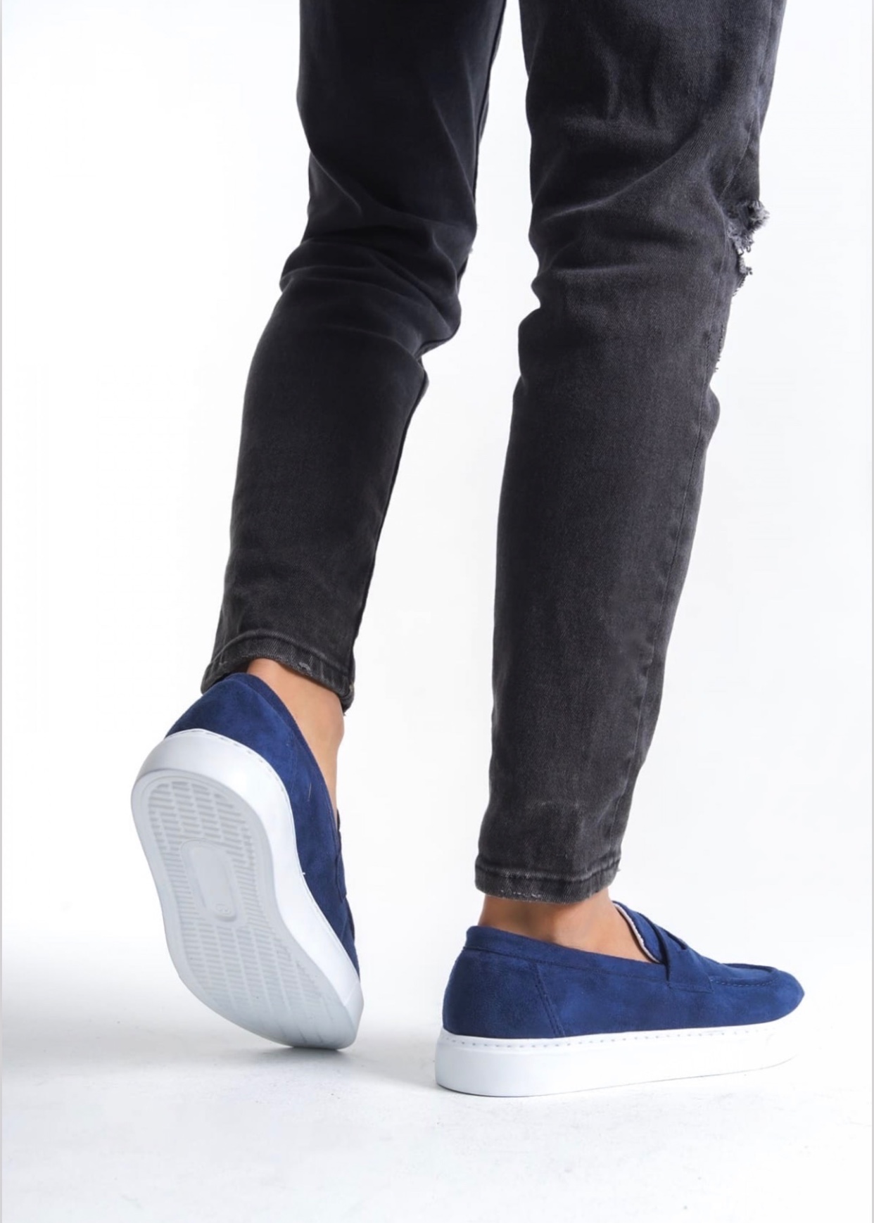 • BA0580 Bağcıksız Kuşaklı Yüksek Taban Lacivert Süet Erkek Ayakkabı