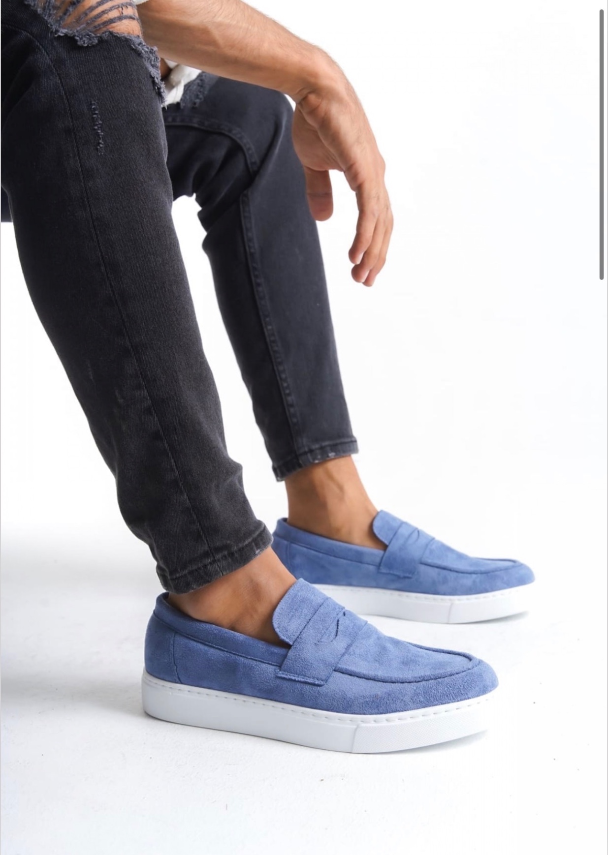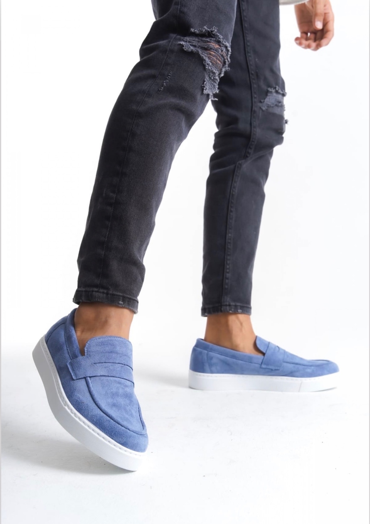 • BA0580 Bağcıksız Kuşaklı Yüksek Taban Mavi Süet Erkek Ayakkabı