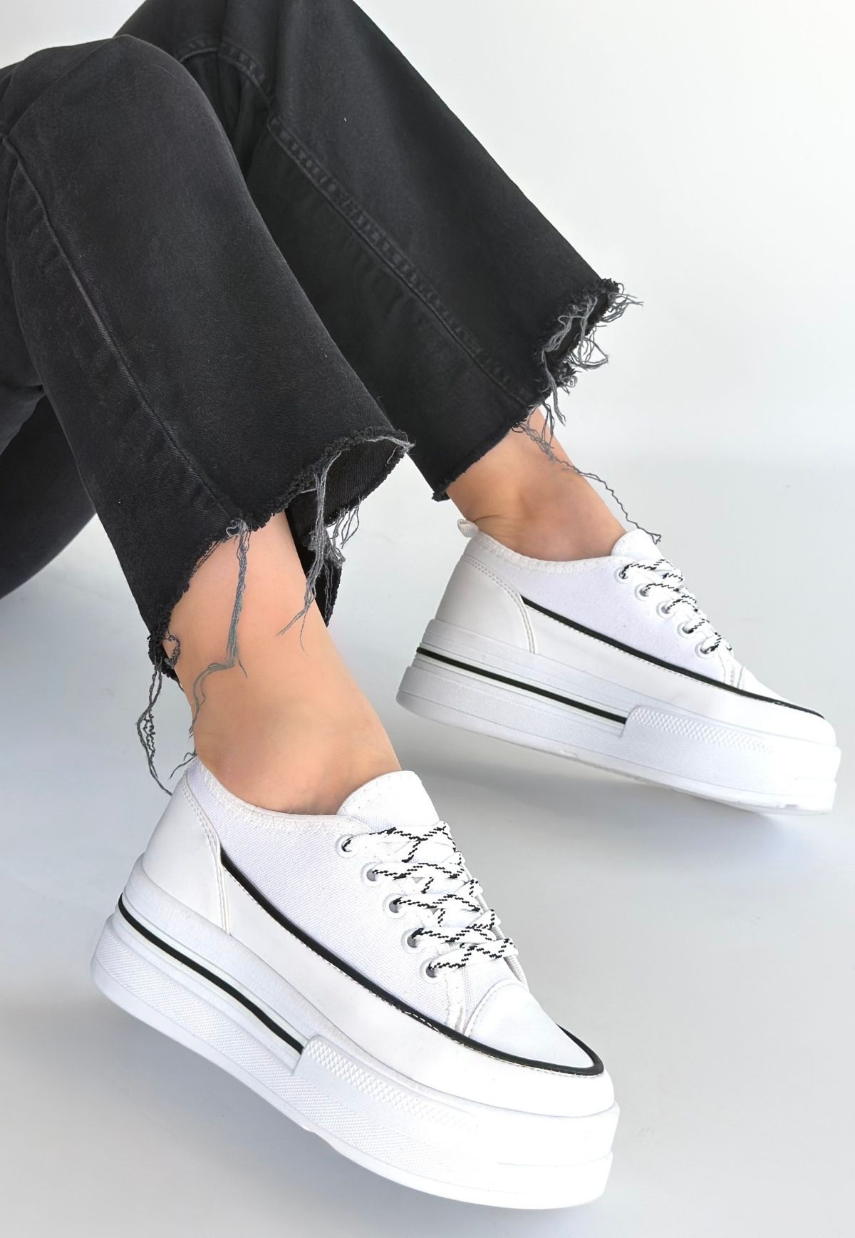 • Dalen Beyaz Keten Bağcıklı Spor Ayakkabı
