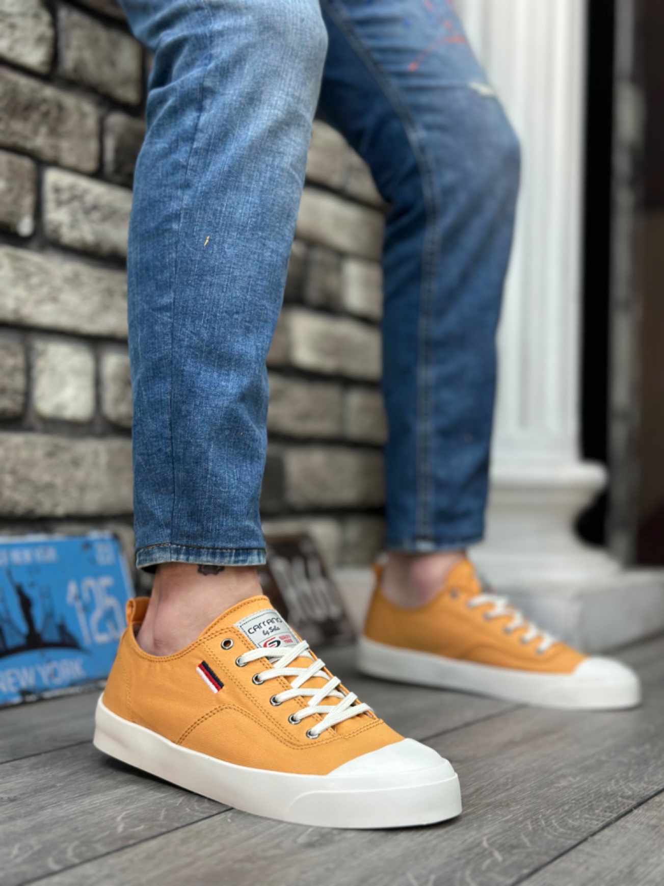 BA0223 BOA Rahat Düz Taban Keten Bağcıklı Sarı Günlük Erkek Ayakkabı