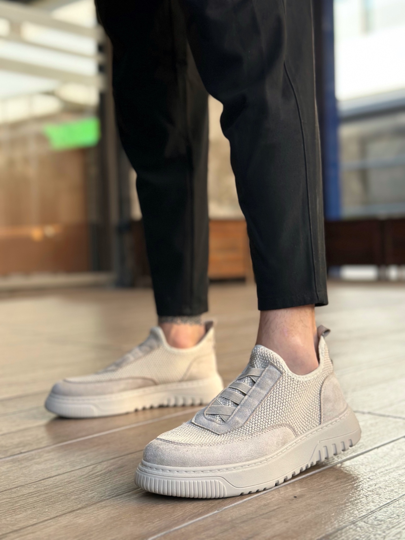 • BA0911 Özel Örme Triko Deri Tozu Detaylı Bej Günlük Spor Ayakkabı