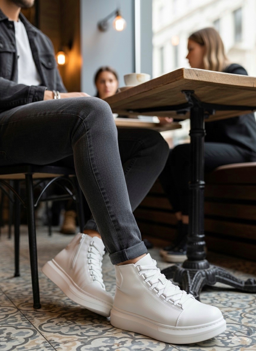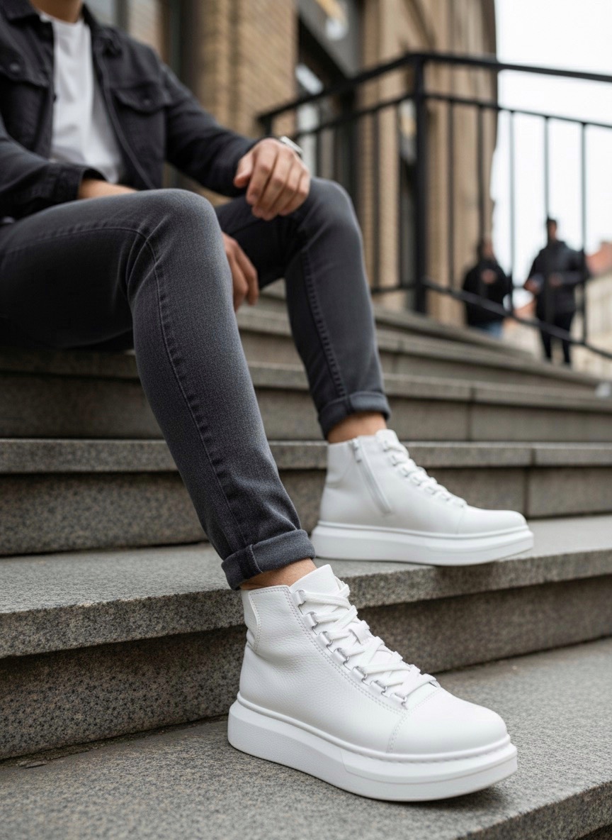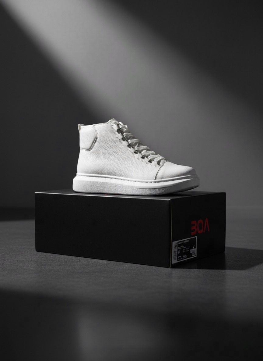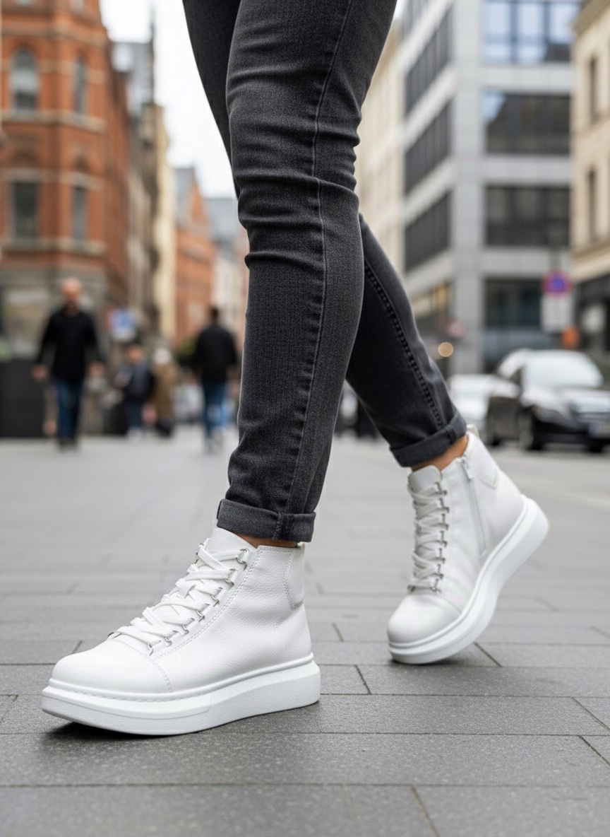 • BA0713 Bağcıklı Beyaz Yüksek Taban Erkek Tarz Spor Bot