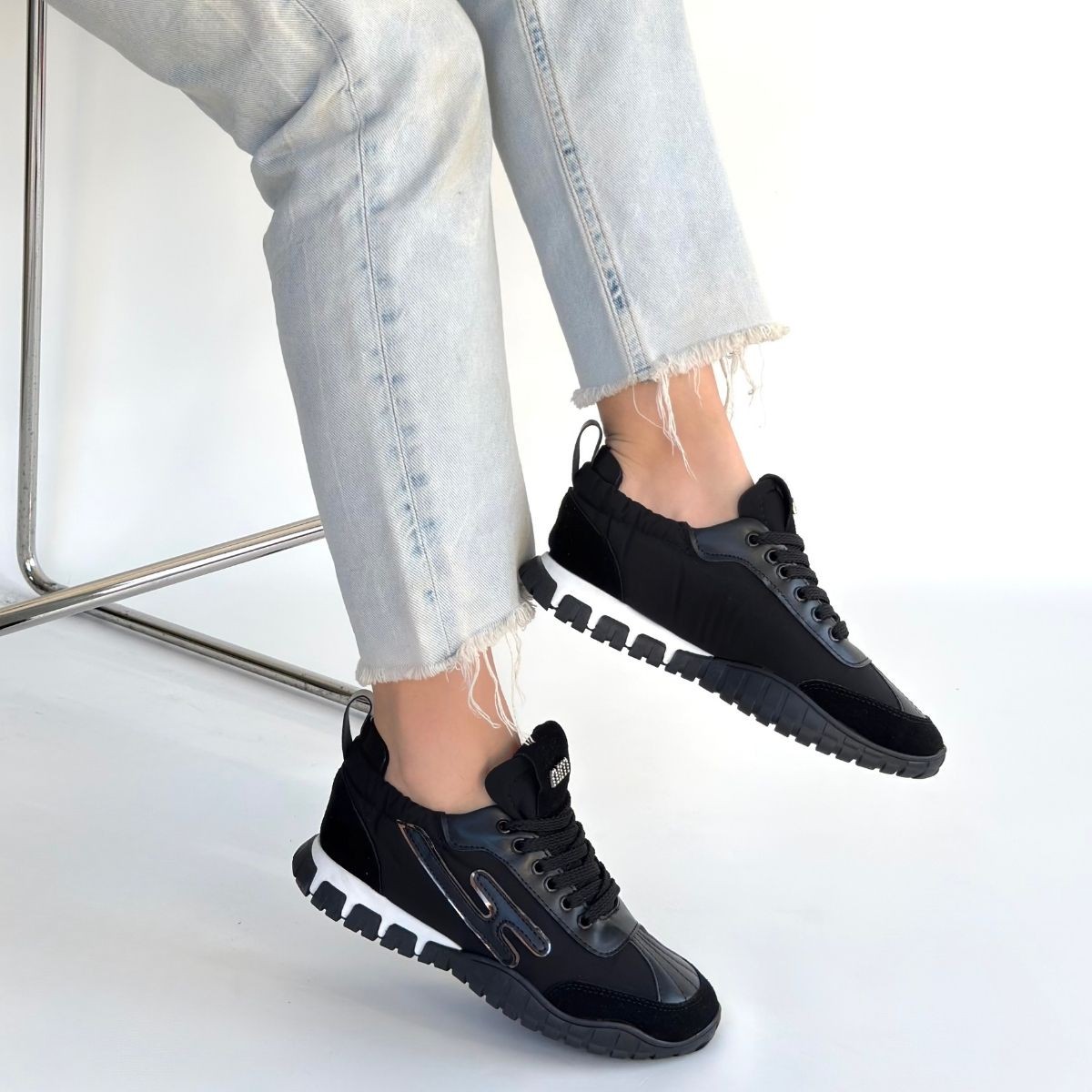 • Huer Siyah Nubuk Bağcıklı Spor Ayakkabı