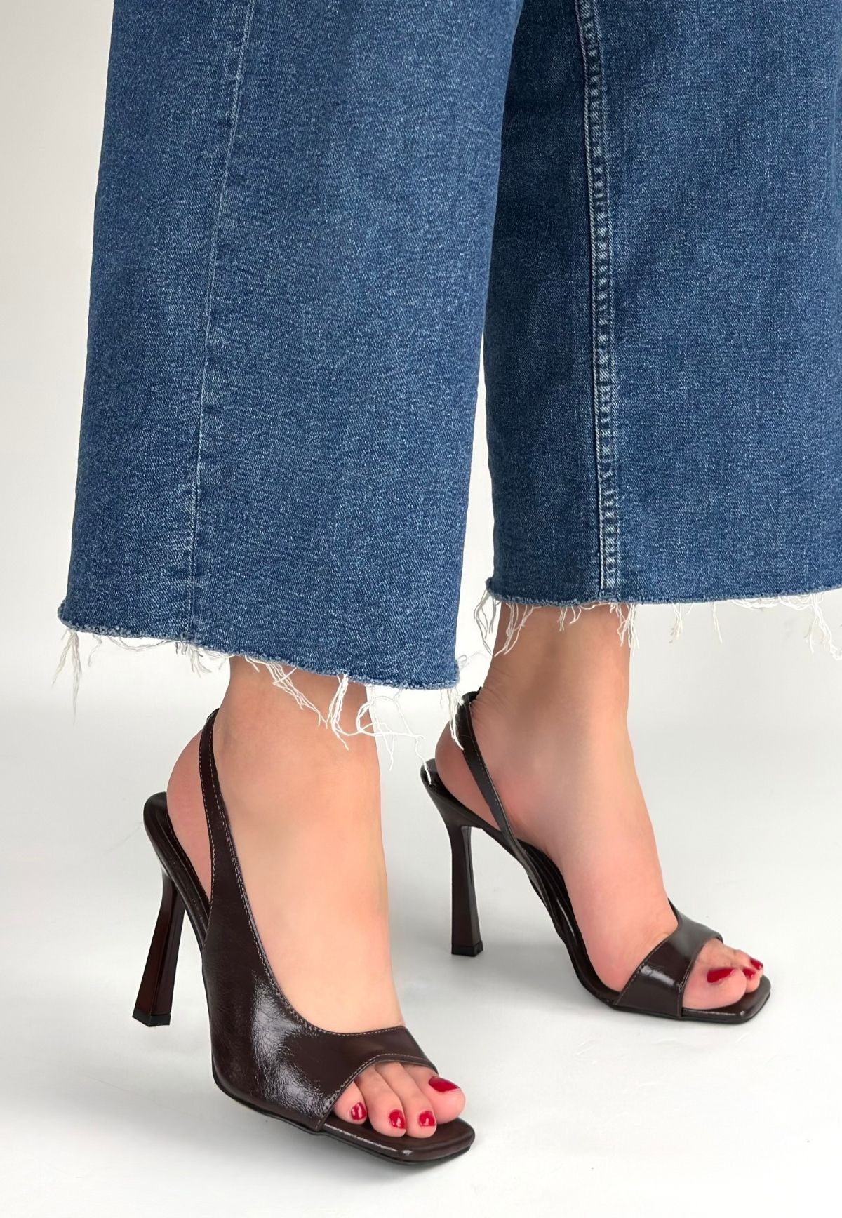 • Janta Kahverengi Cilt Topuklu Ayakkabı