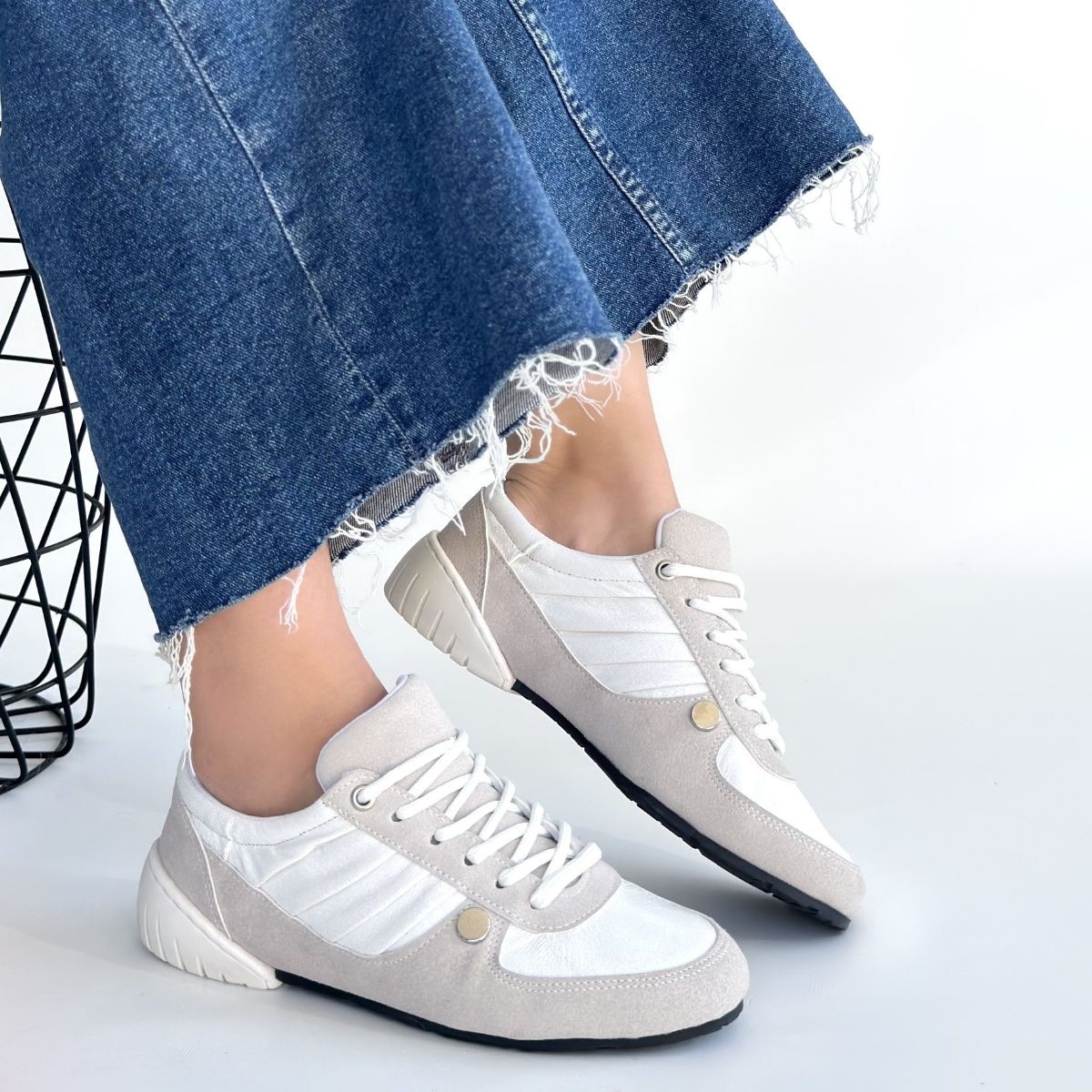 • Jawen Gri Nubuk Beyaz Detaylı Spor Ayakkabı