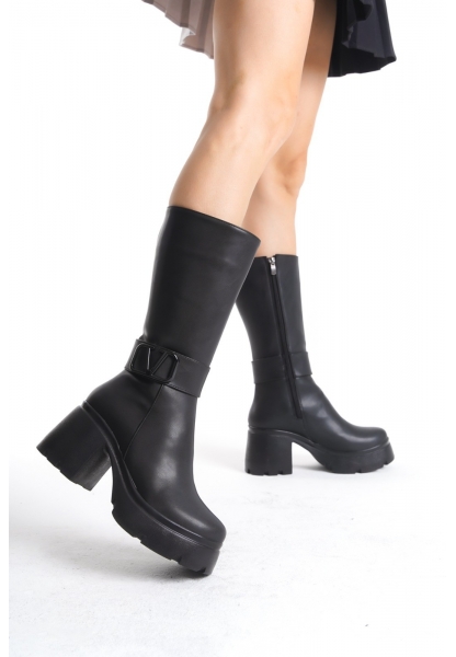 Detay: Topuklu Diz Altı Yandan Fermuarlı Çizme