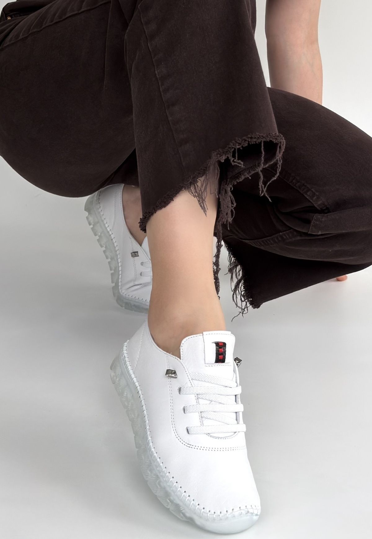• Jiten Beyaz Deri Bağcıklı Spor Ayakkabı