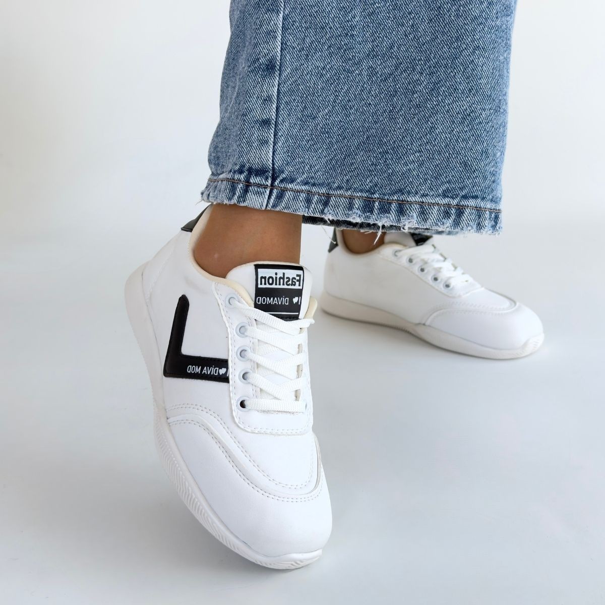 • Jowen Beyaz Cilt Siyah Detaylı Bağcıklı Spor Ayakkabı