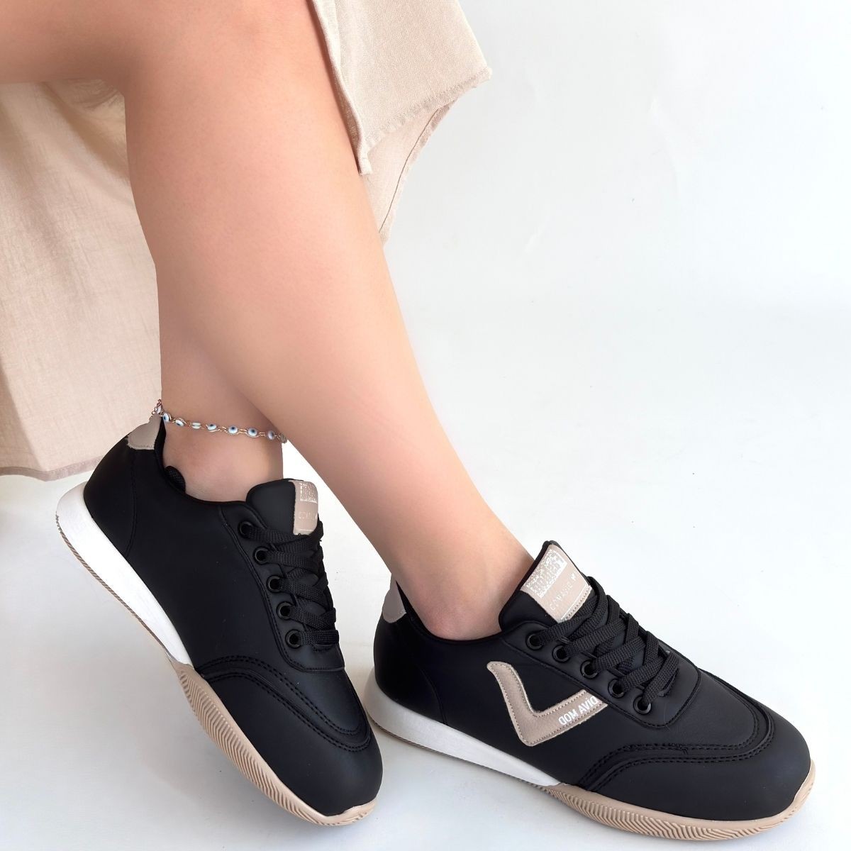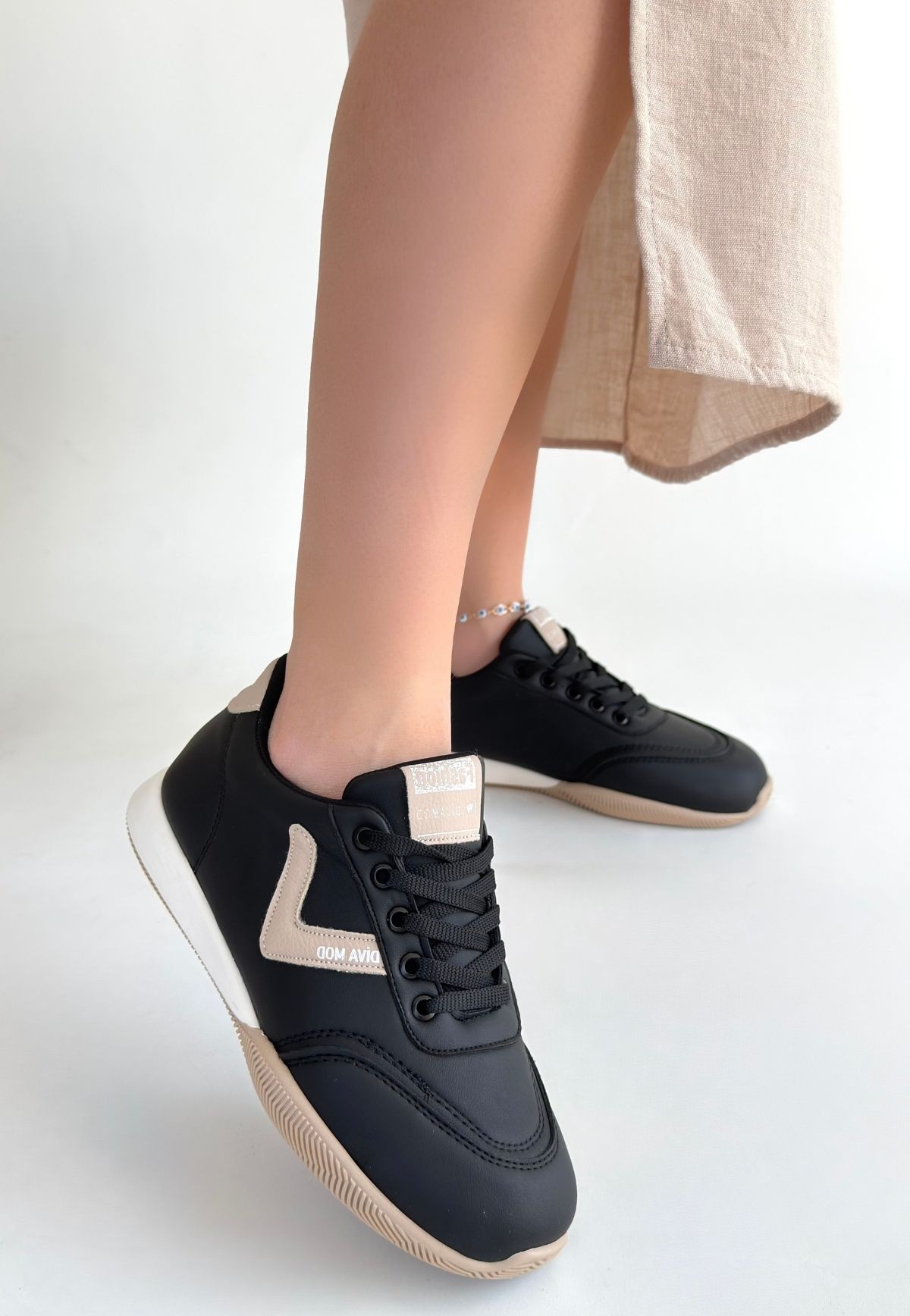 • Jowen Siyah Cilt Bej Detaylı Bağcıklı Spor Ayakkabı