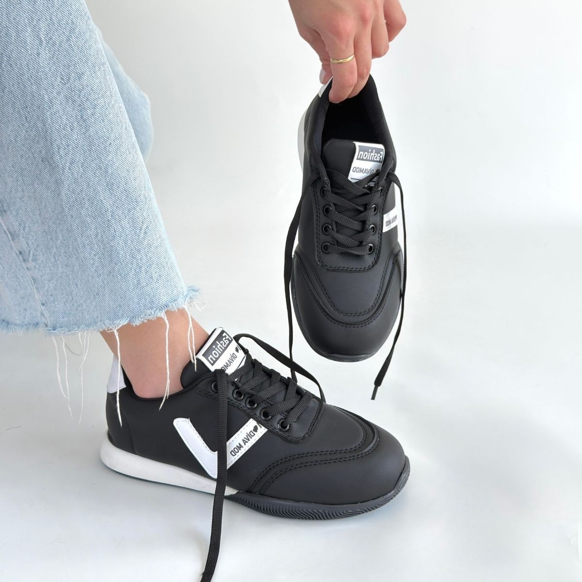 • Jowen Siyah Cilt Beyaz Detaylı Bağcıklı Spor Ayakkabı