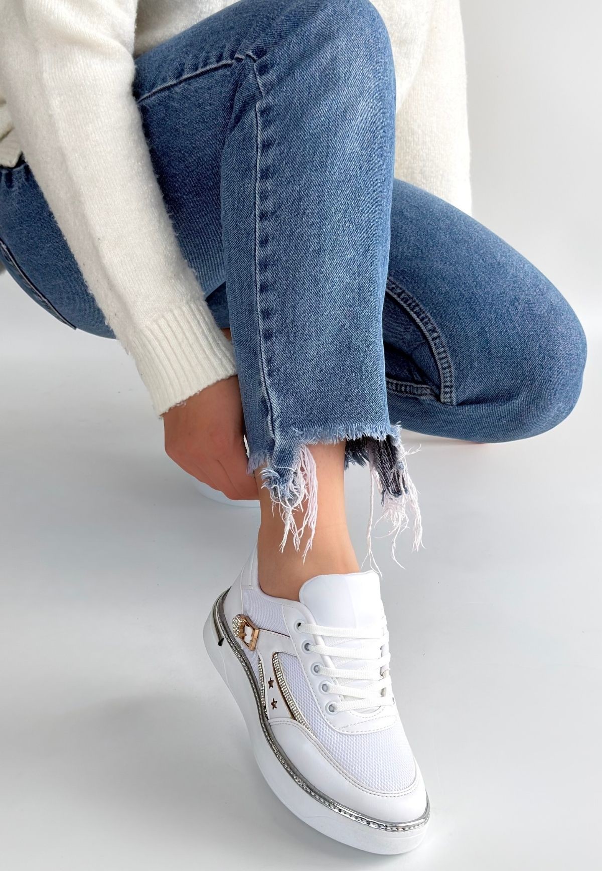 • Junda Beyaz Cilt Bağcıklı Spor Ayakkabı