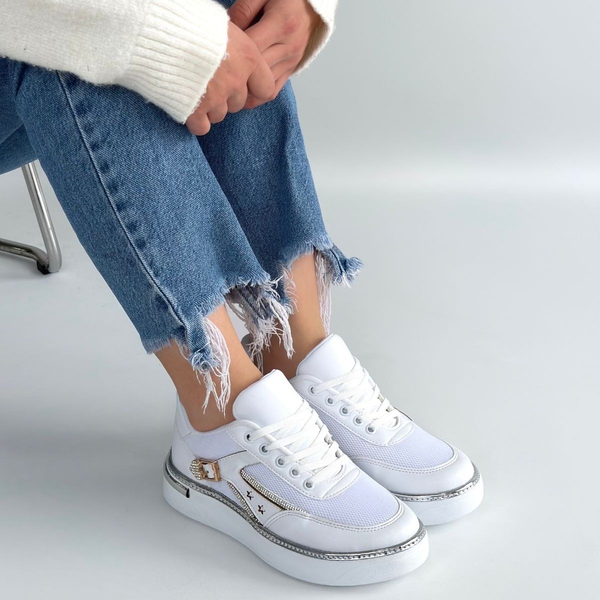 Junda Beyaz Cilt Bağcıklı Spor Ayakkabı