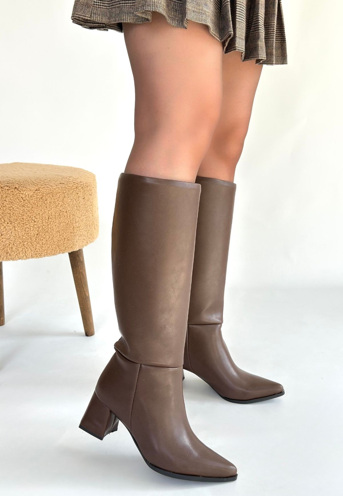 Çizme Roksa Acı Kahvei Cilt Topuklu Çizme