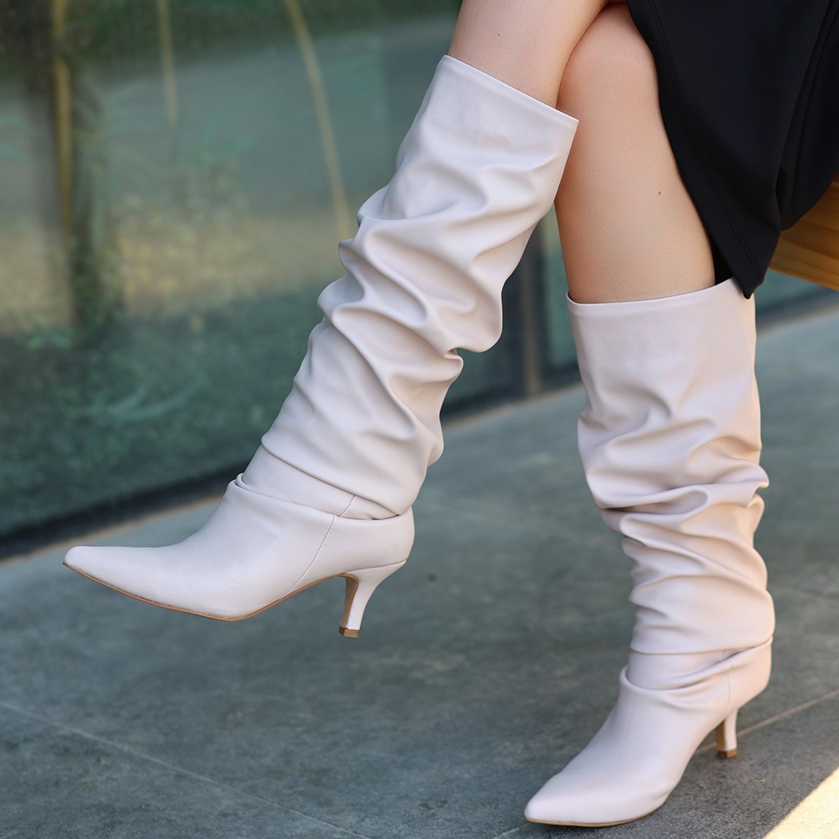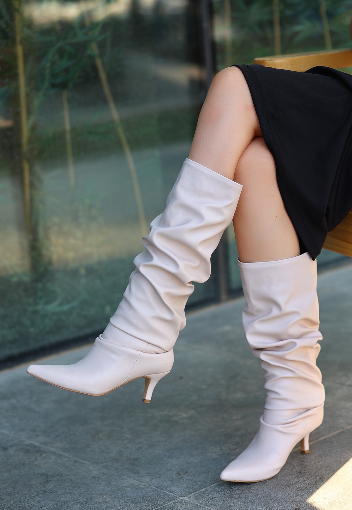 Çizme Zelya Bej Cilt Topuklu Çizme