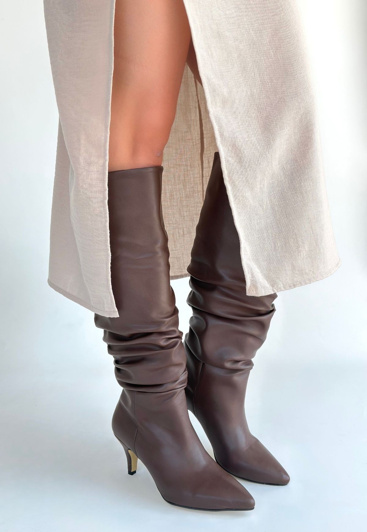 • Zelya Kahverengi Cilt Topuklu Çizme