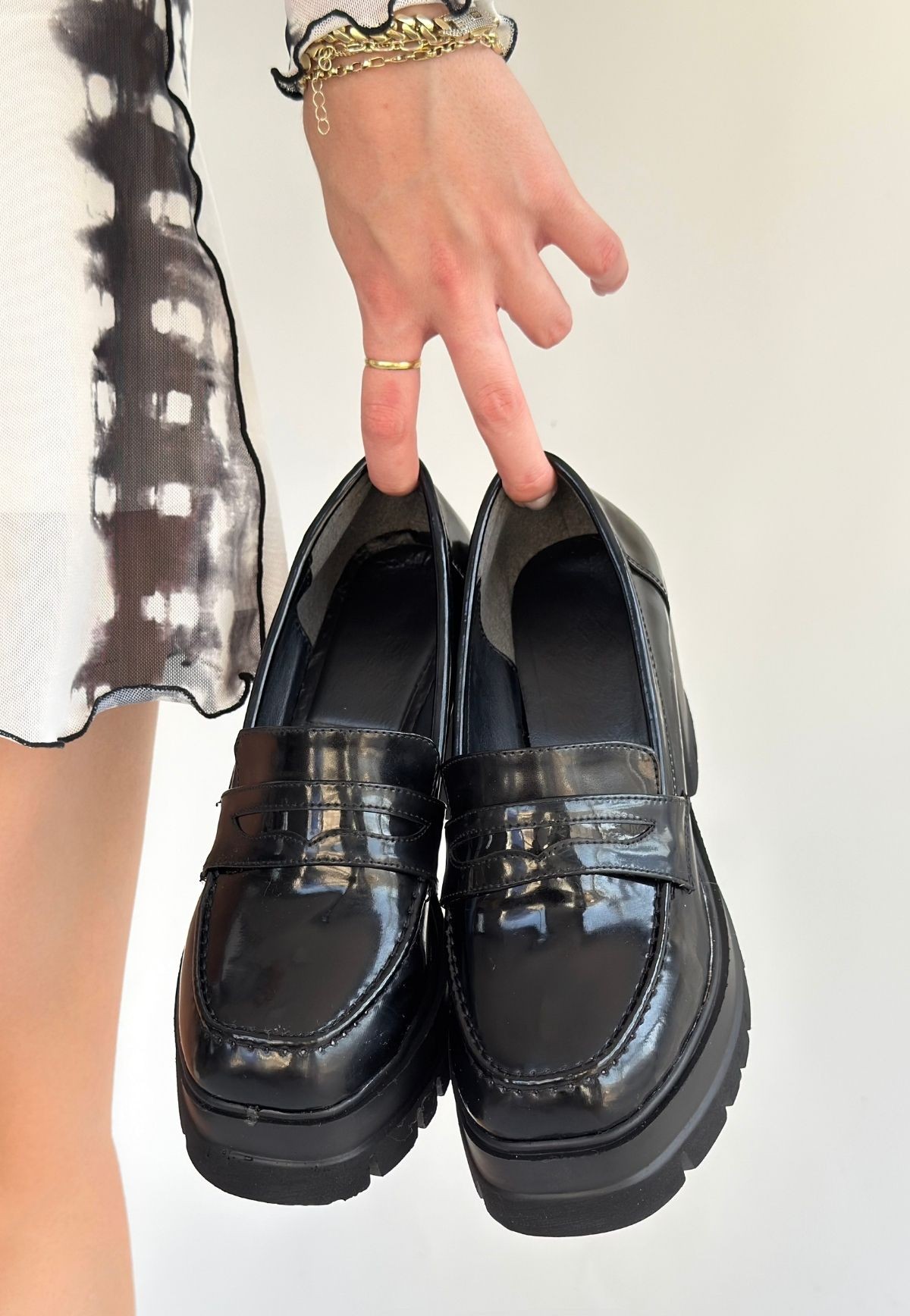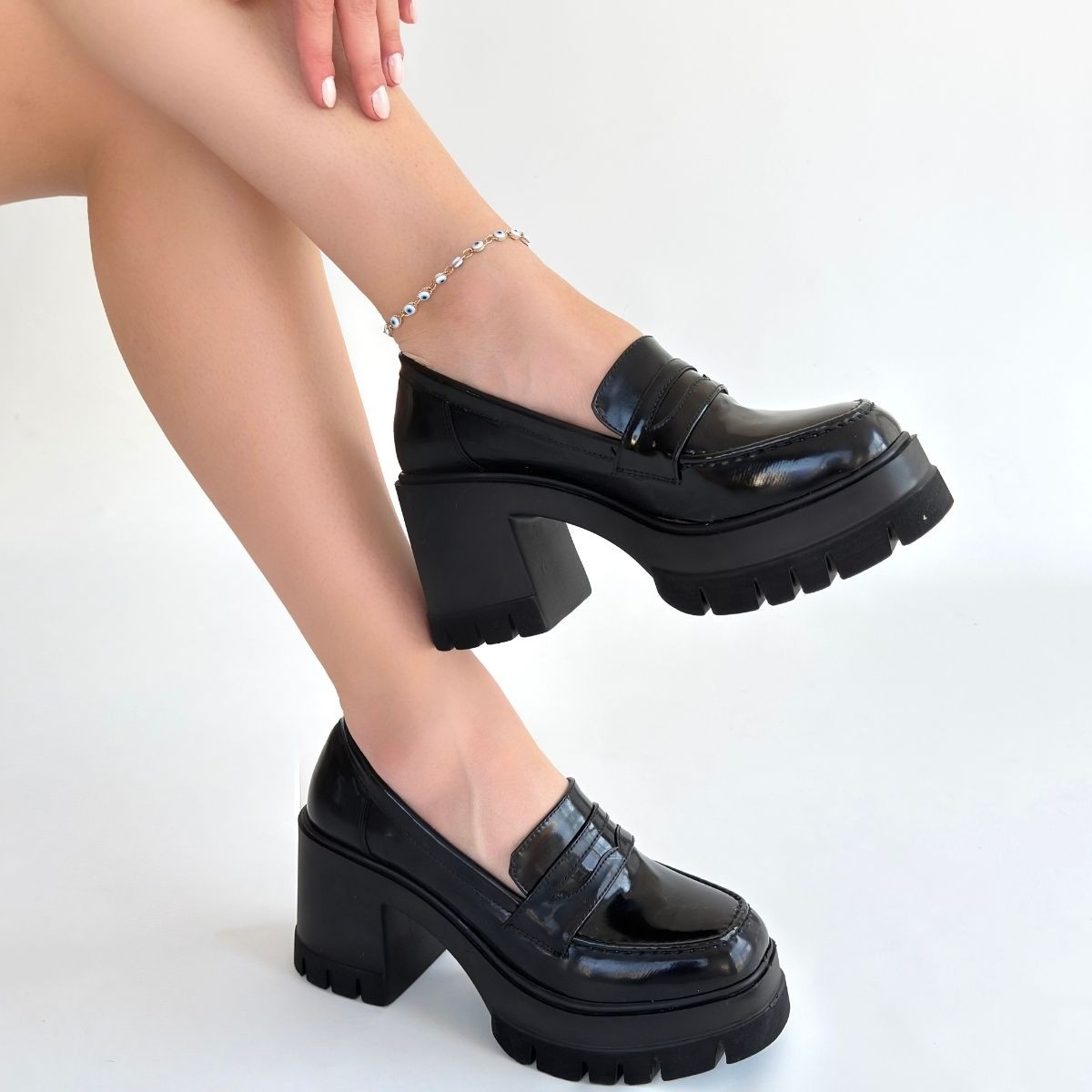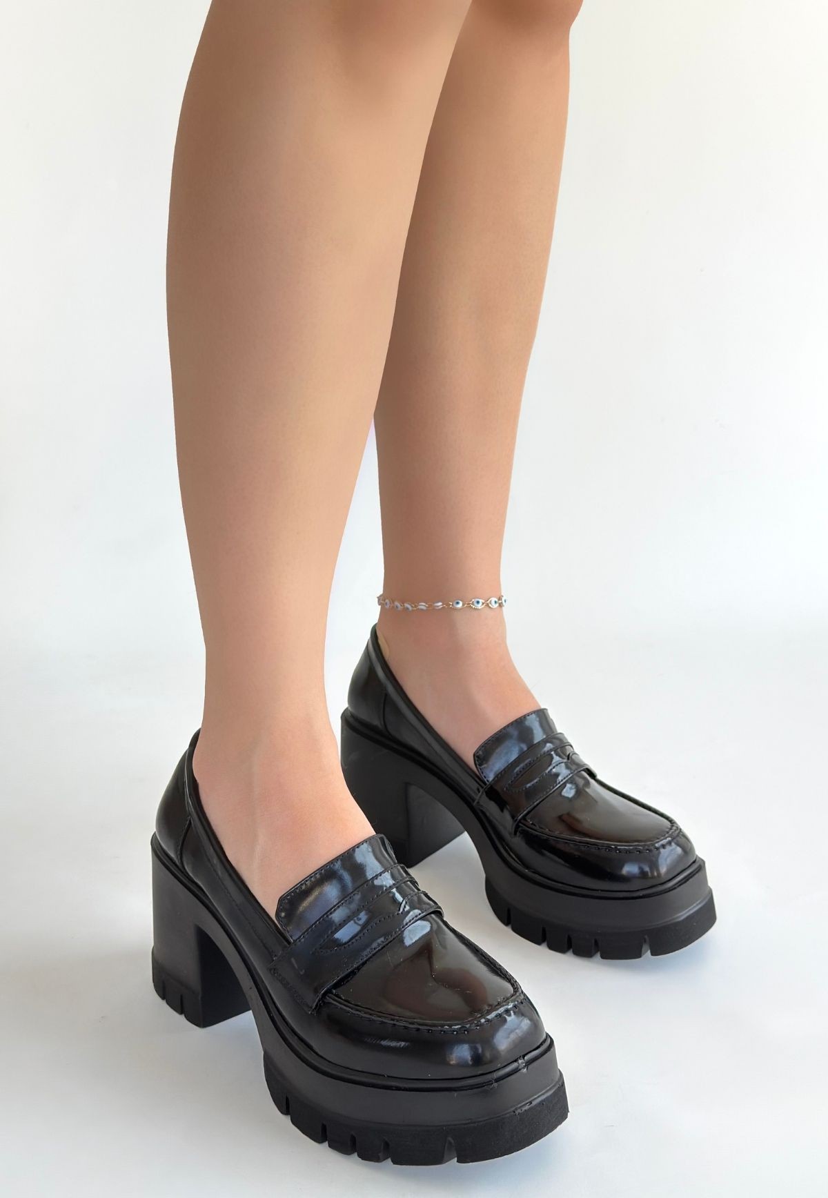 • Janes Siyah Rugan Dolgu Topuk Ayakkabı