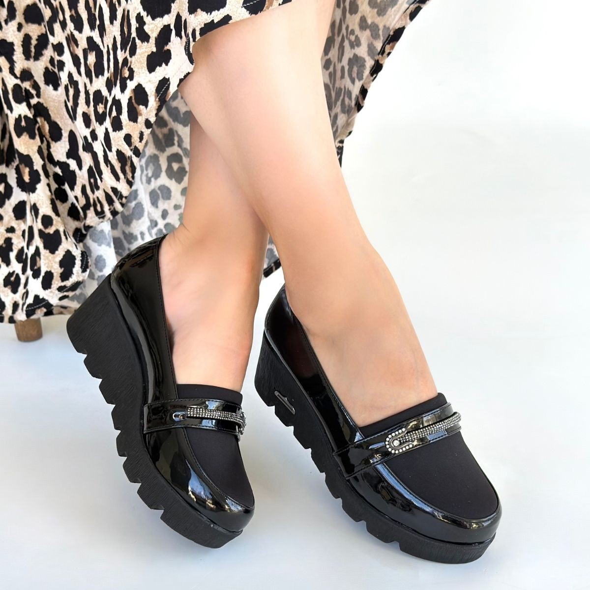 • Kear Siyah Rugan Dolgu Topuk Ayakkabı