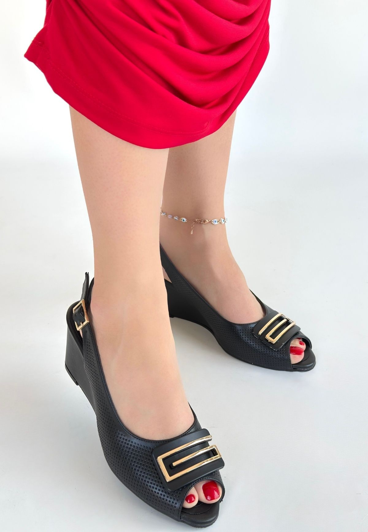 • Mamba Siyah Cilt Dolgu Topuk Ayakkabı