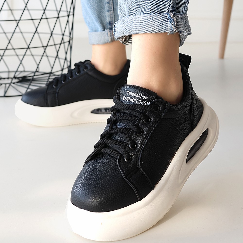 Kadın Spor Chris Siyah Cilt Bağcıklı Spor Ayakkabı