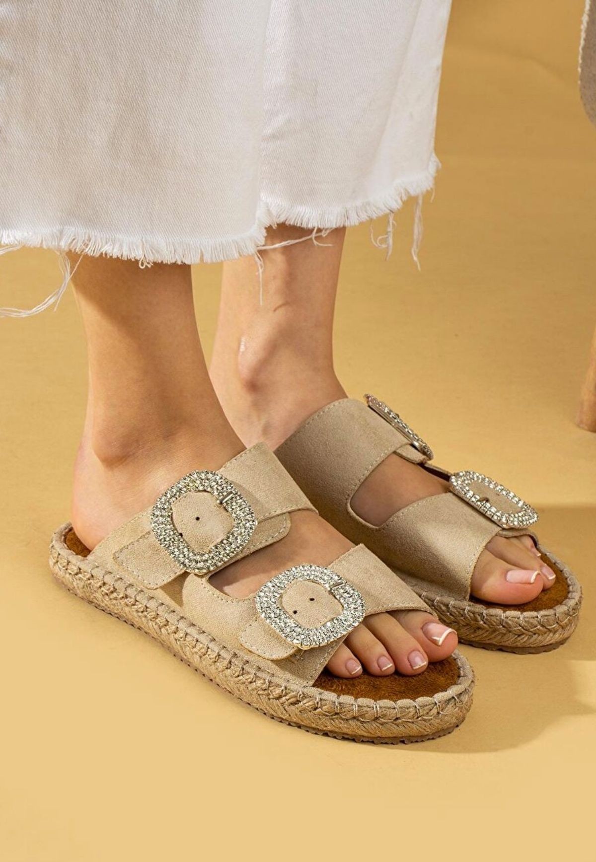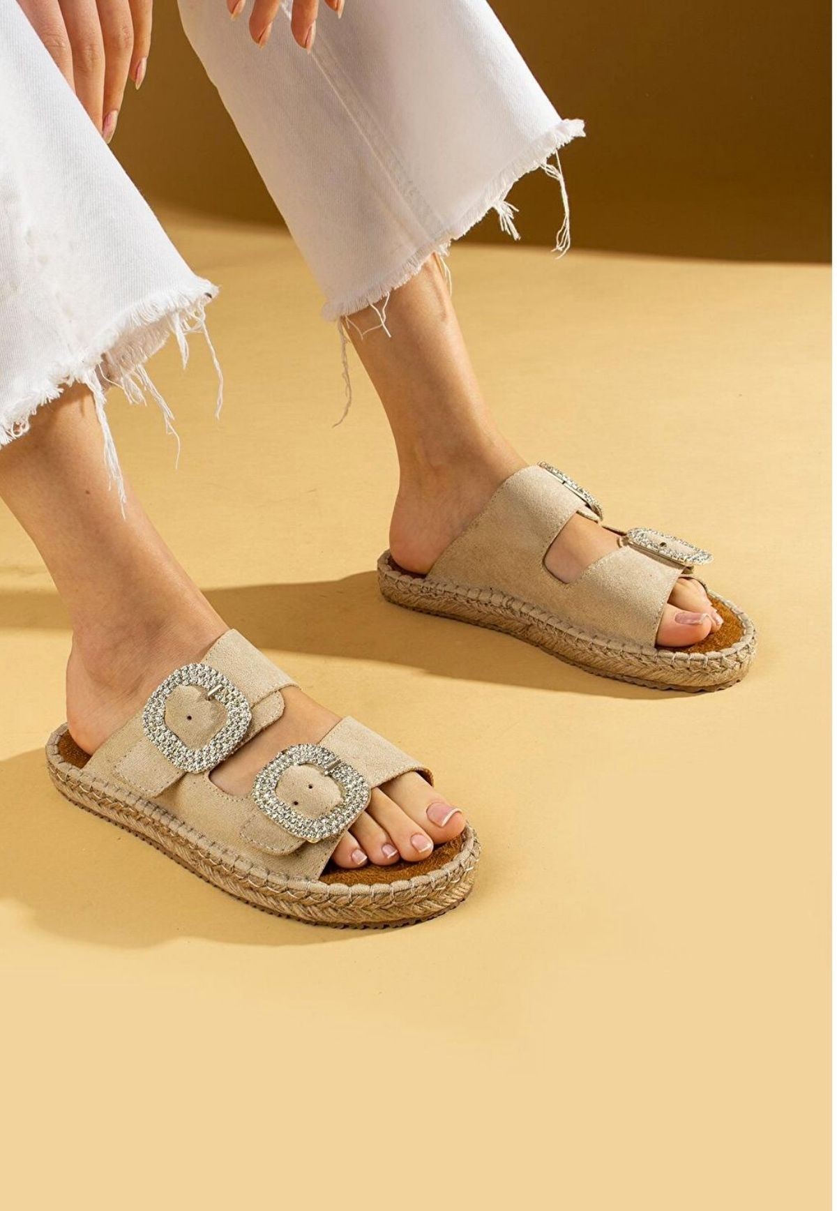Terlik Hertas Bej Nubuk Tokalı Terlik