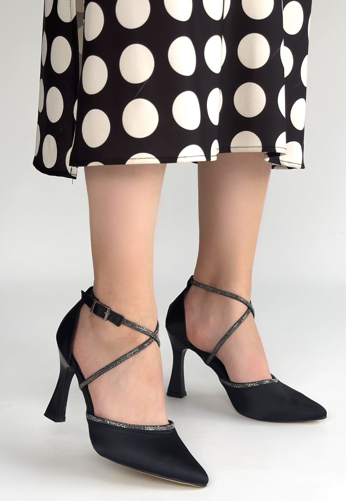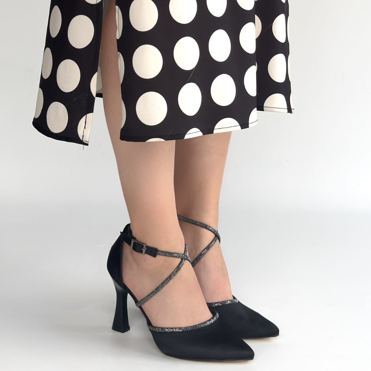 • Kanji Siyah Saten Topuklu Ayakkabı