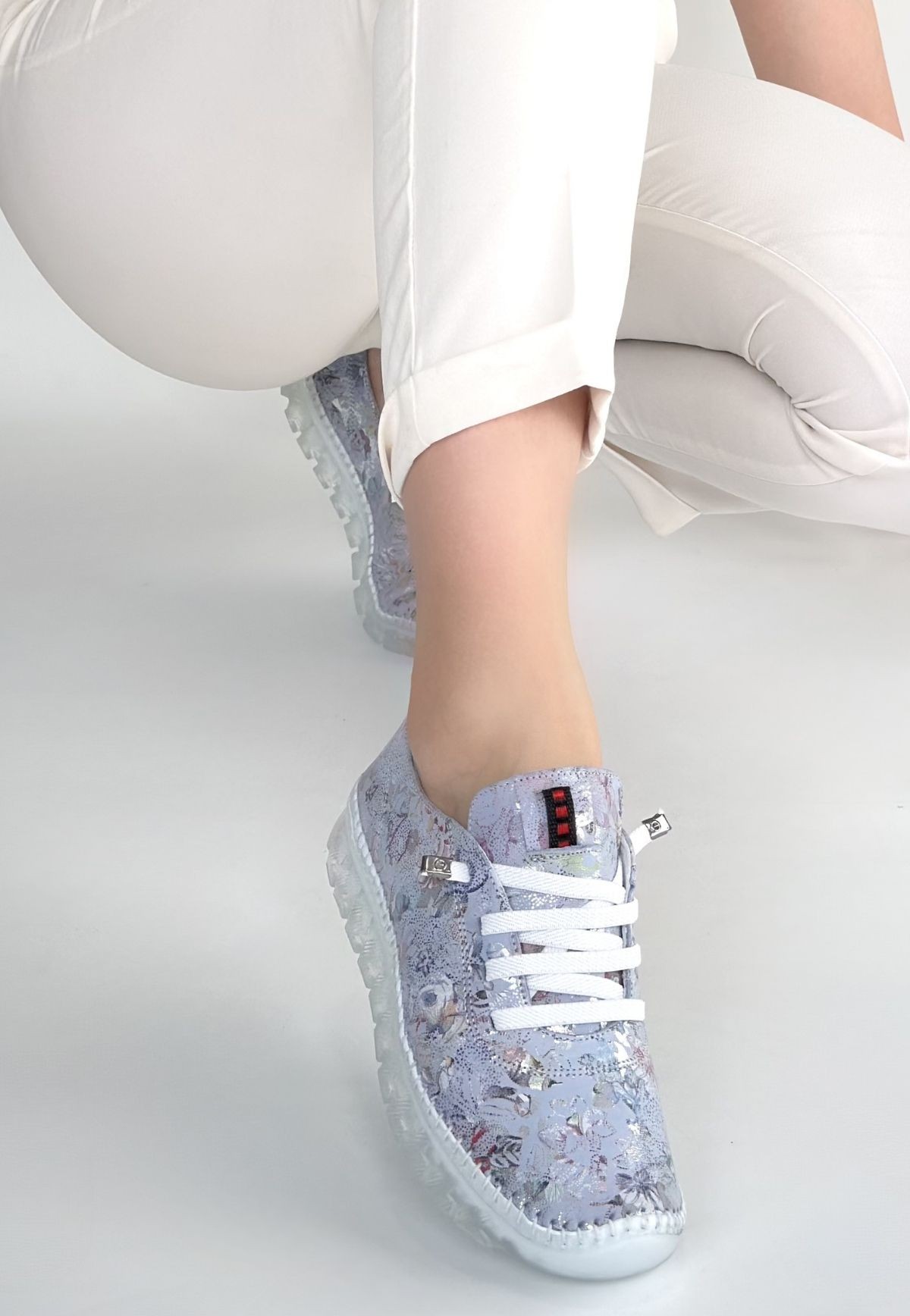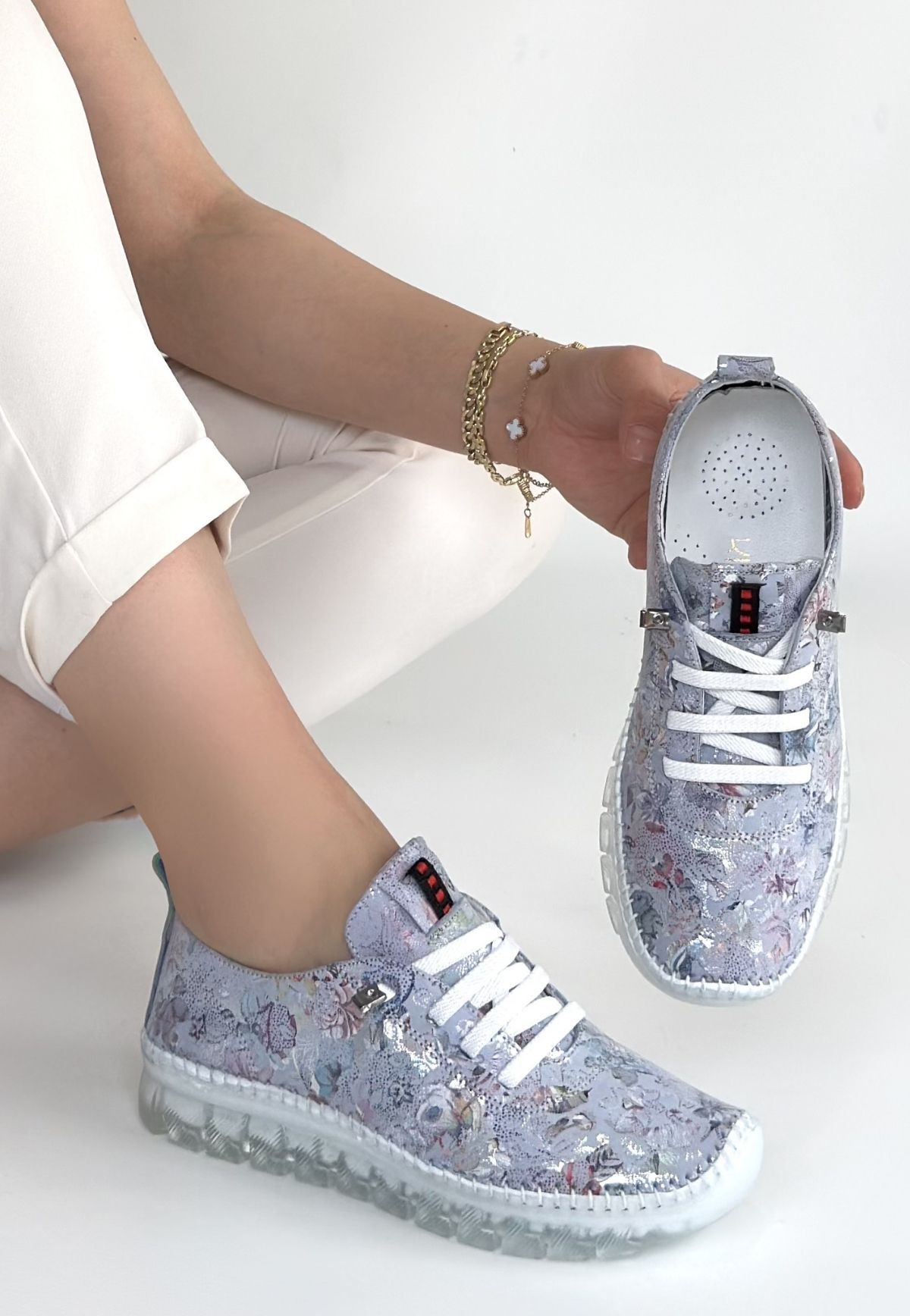 Jiten Lila Desenli Deri Bağcıklı Spor Ayakkabı