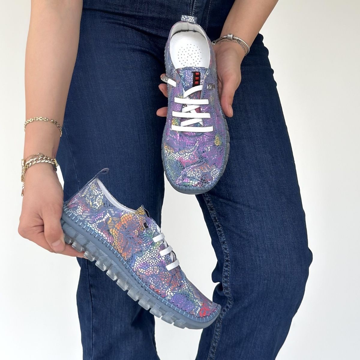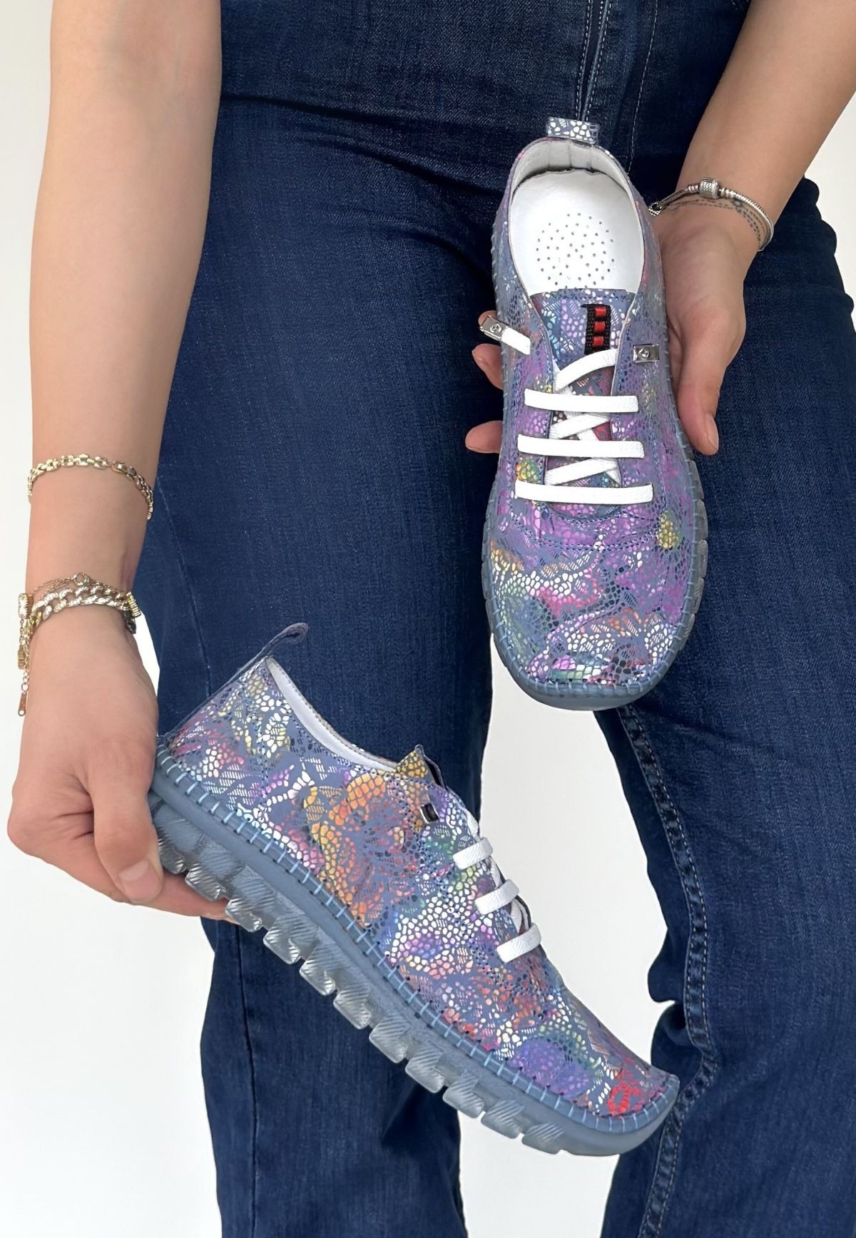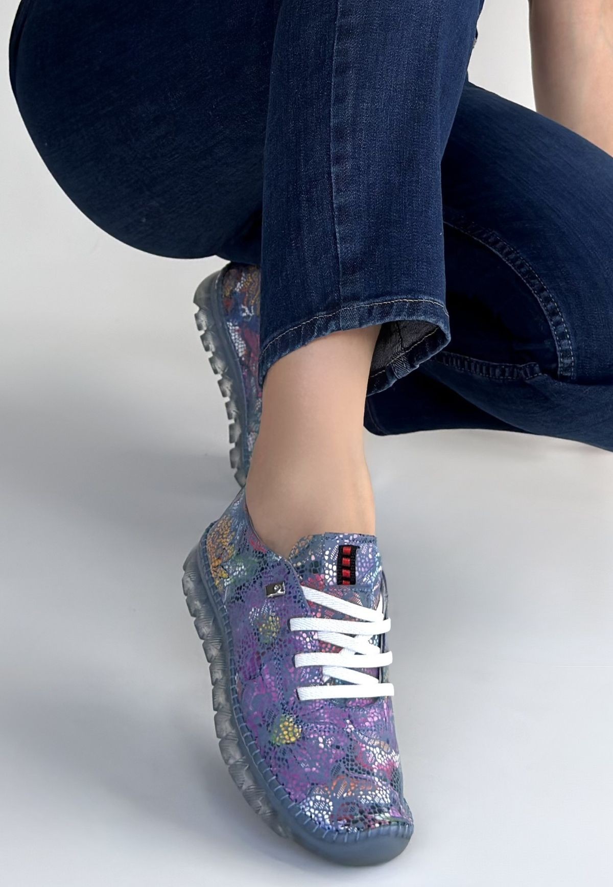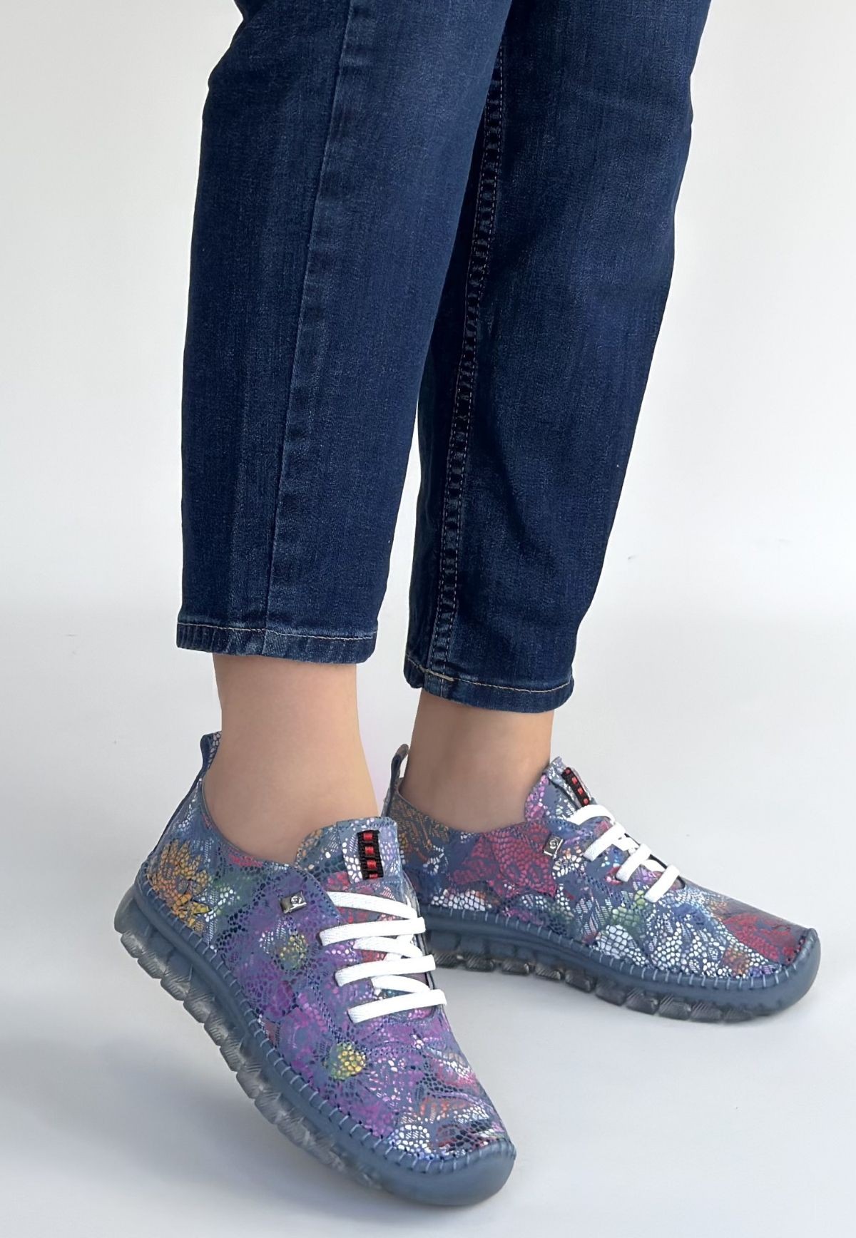 • Jiten Mor Desenli Deri Bağcıklı Spor Ayakkabı