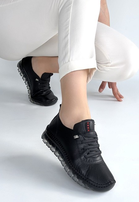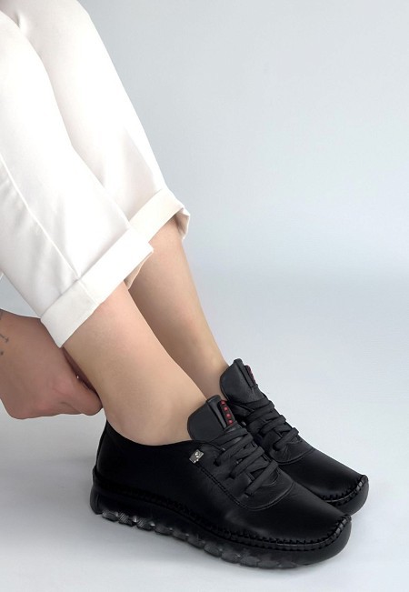 • Kitta Siyah Deri Bağcıklı Spor Ayakkabı
