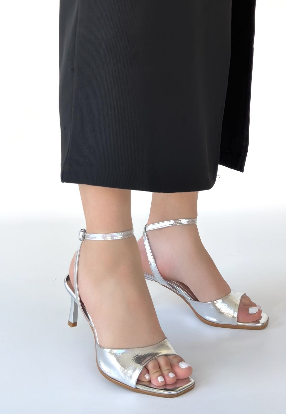 Lenya Gümüş Rugan Topuklu Ayakkabı