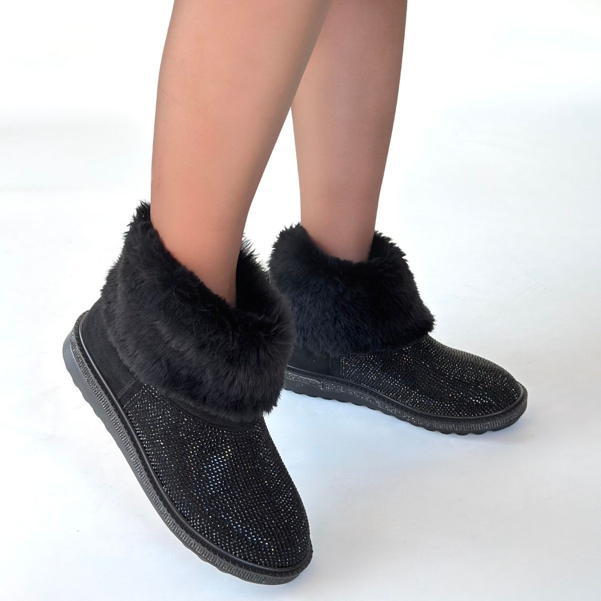 • Linka Siyah Süet Siyah Boncuk İşlemeli Bot