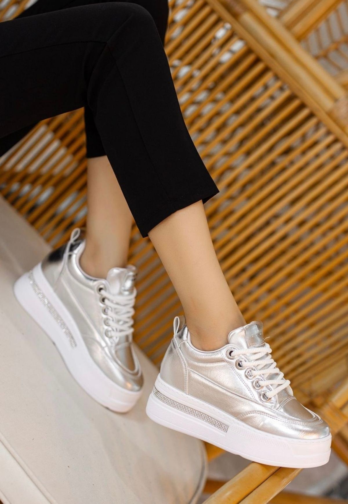 • Lulu Gümüş Rugan Bağcıklı Spor Ayakkabı