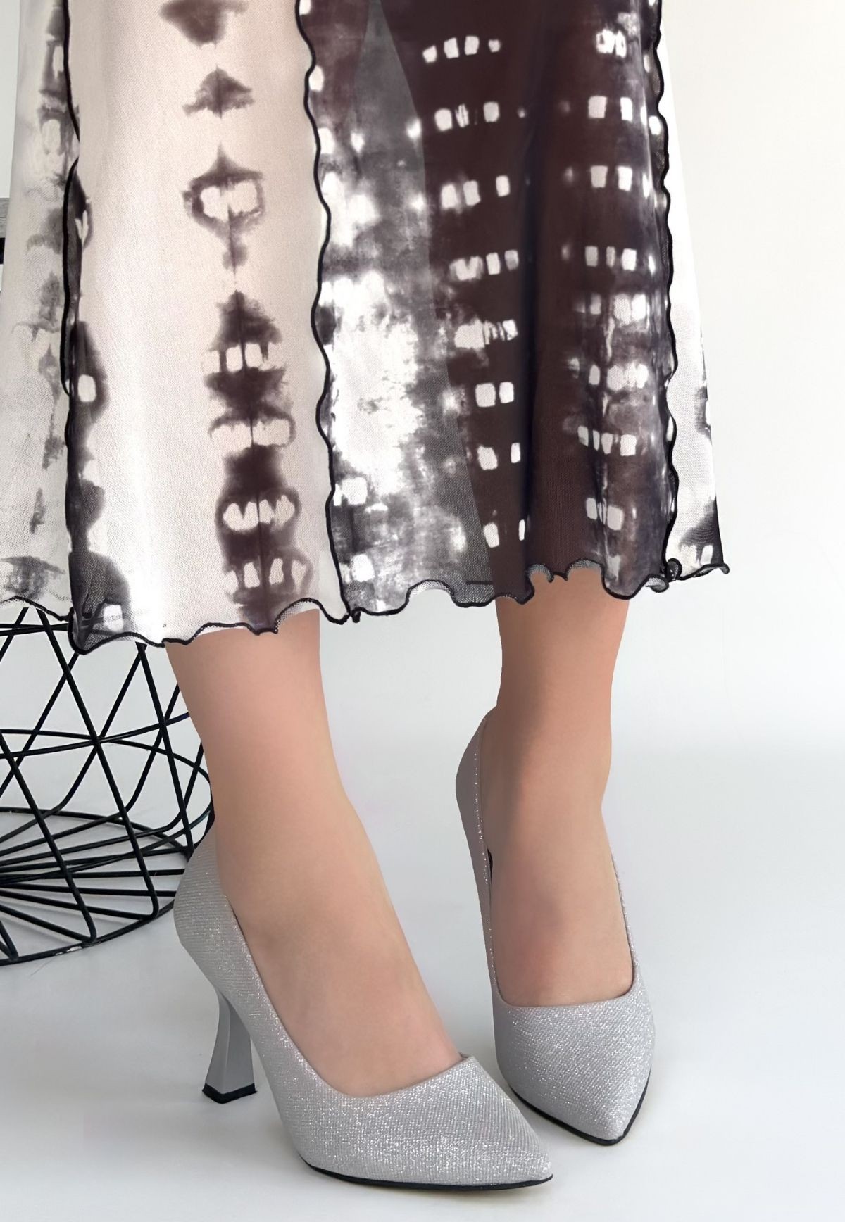 • Meyli Gümüş Saten Simli Topuklu Ayakkabı