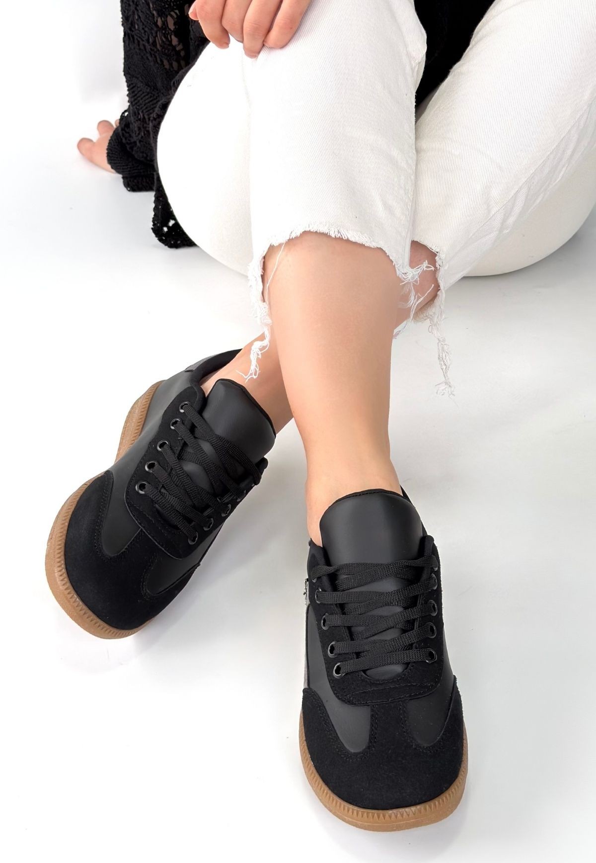 • Mier Siyah Cilt Bağcıklı Spor Ayakkabı
