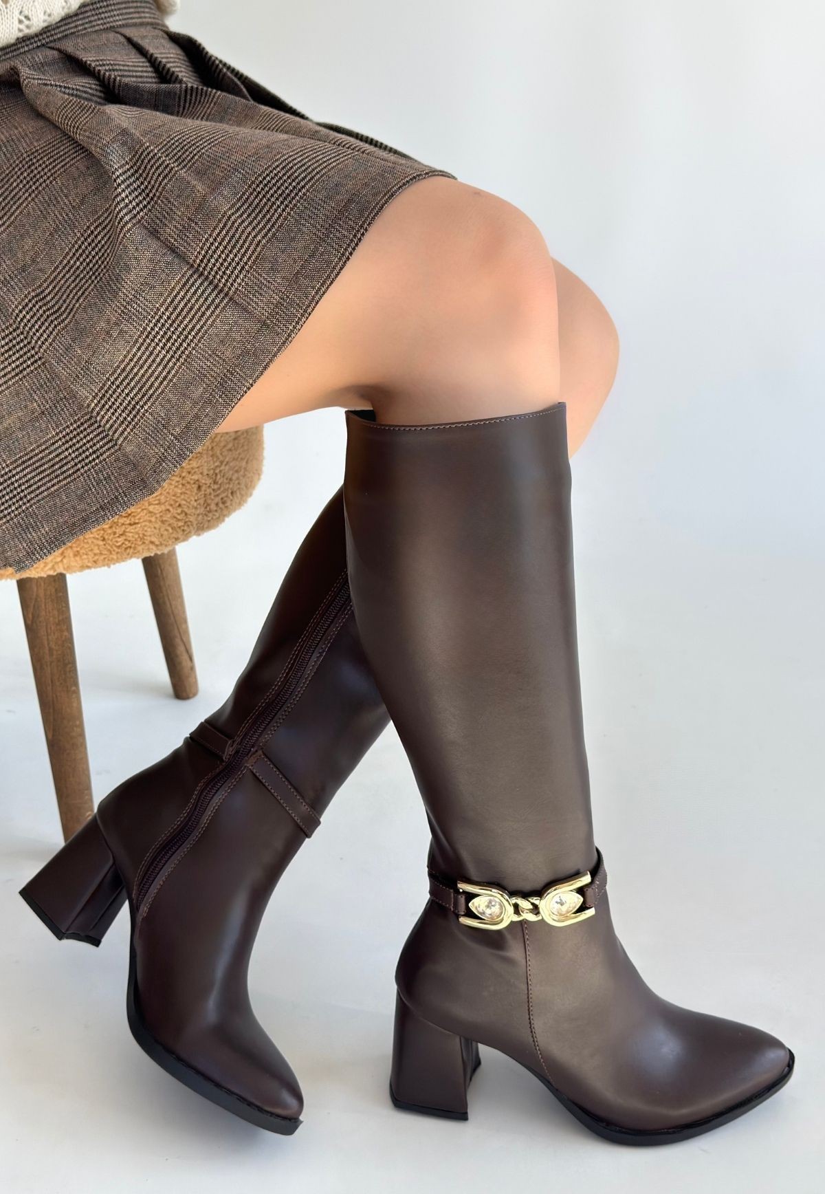 • Mooni Kahverengi Cilt Topuklu Çizme